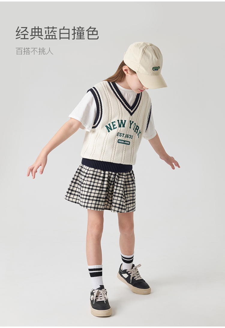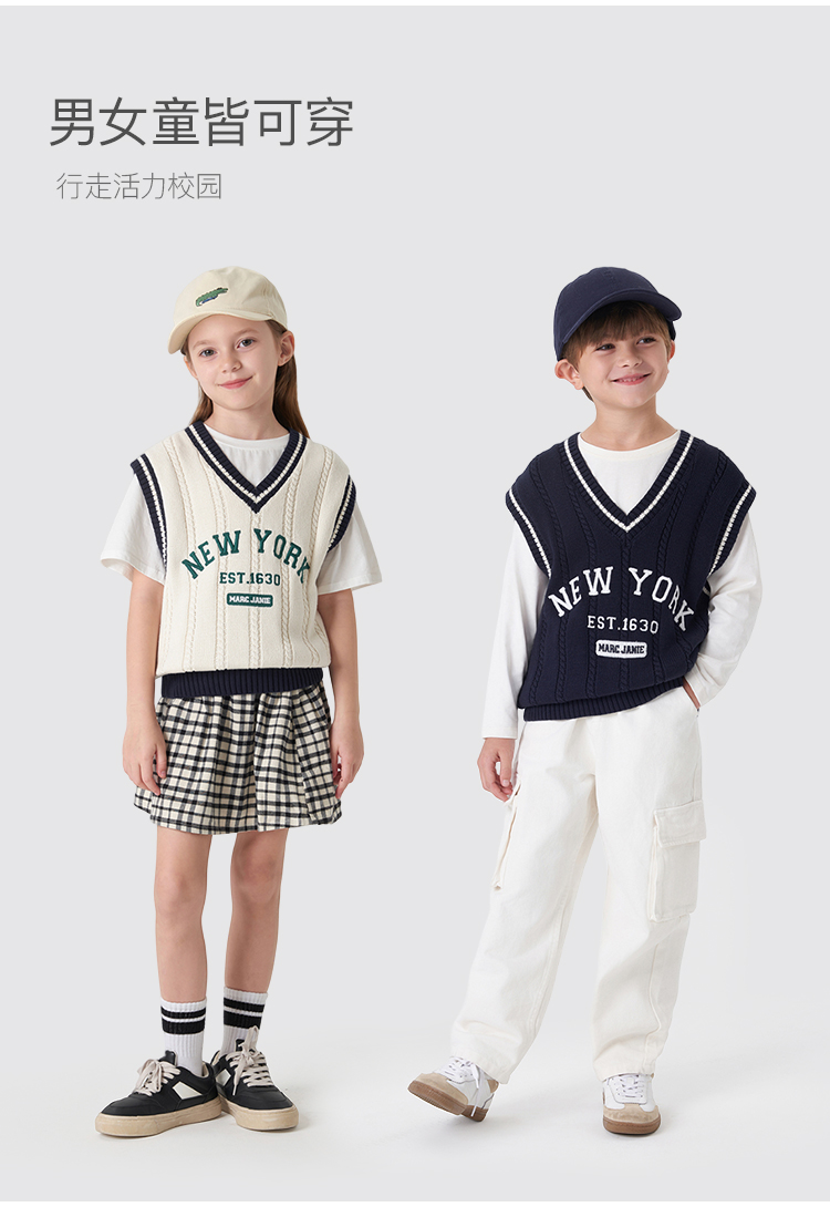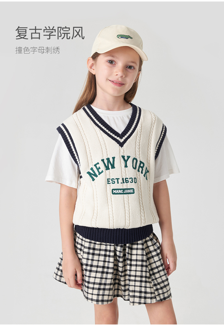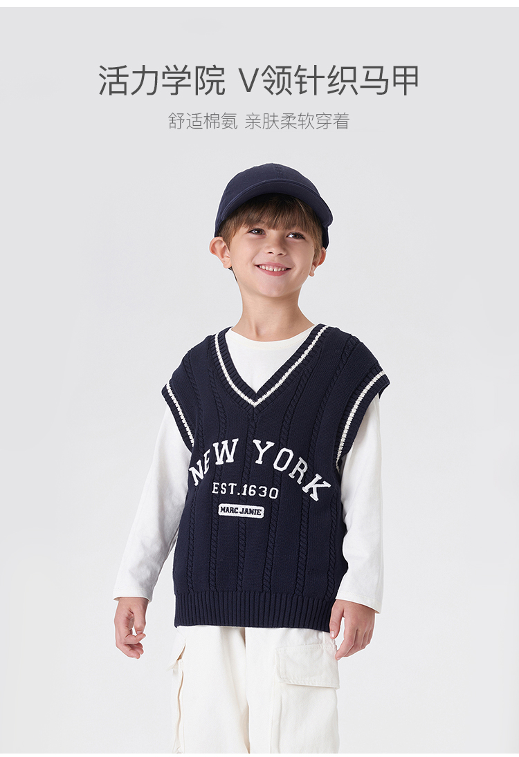 【学院风】马克珍妮秋装新款 男女童字母V领针织马甲231836