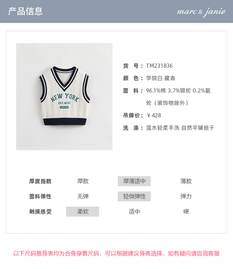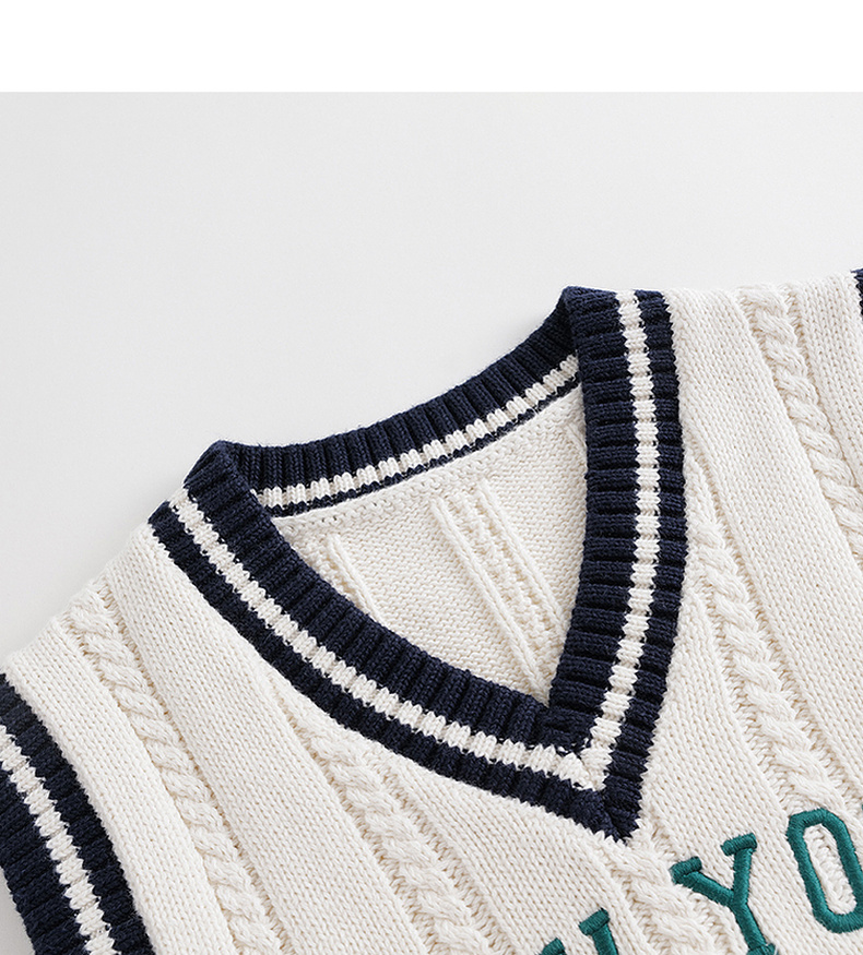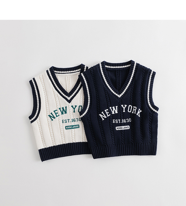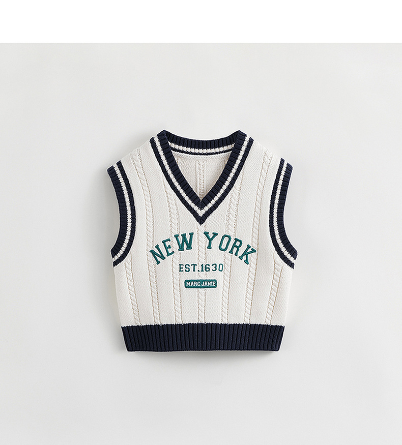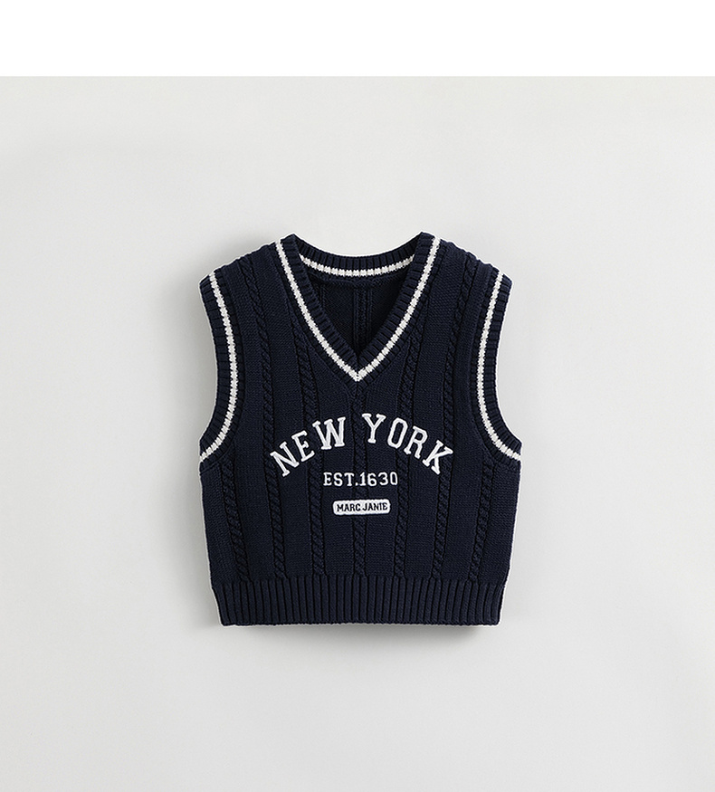 【学院风】马克珍妮秋装新款 男女童字母V领针织马甲231836