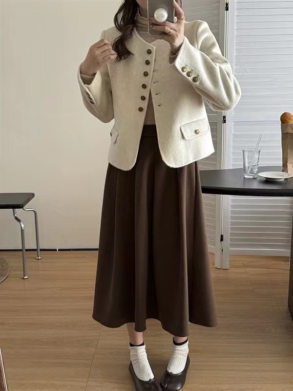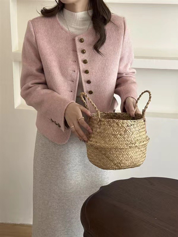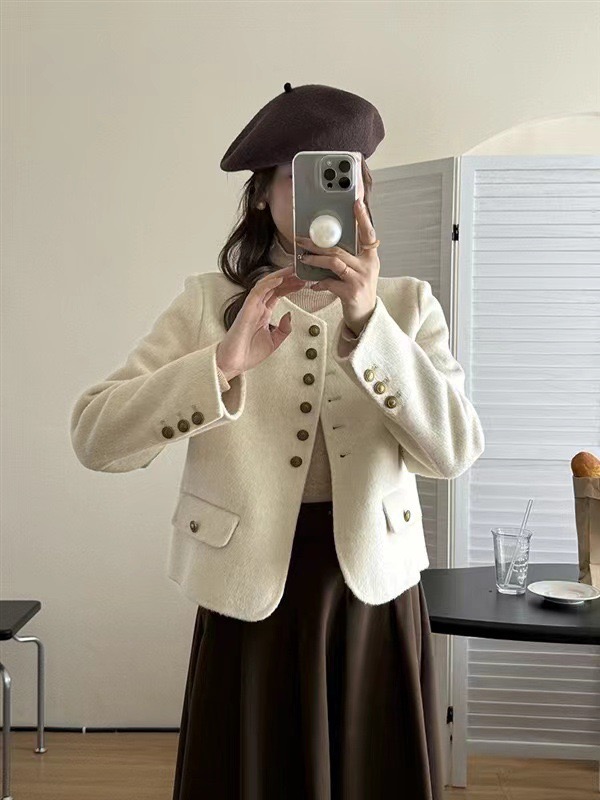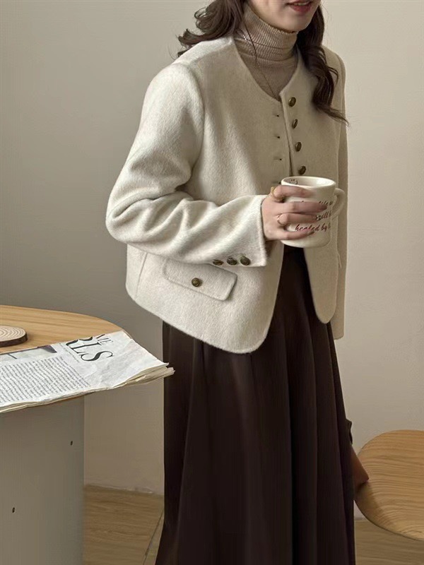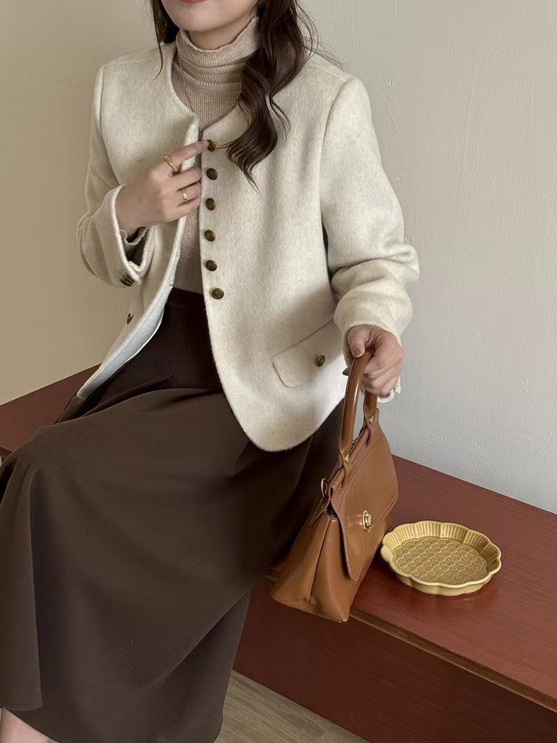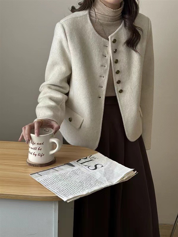 【YW】无忧购”法式小香风圆领短款双面羊毛呢子外套(截单后7天发货)25年清仓捡漏