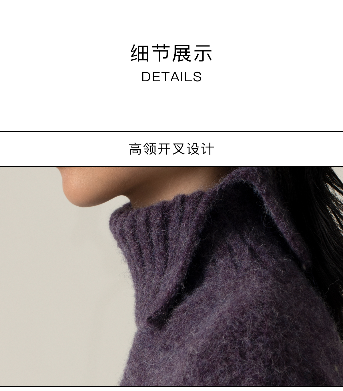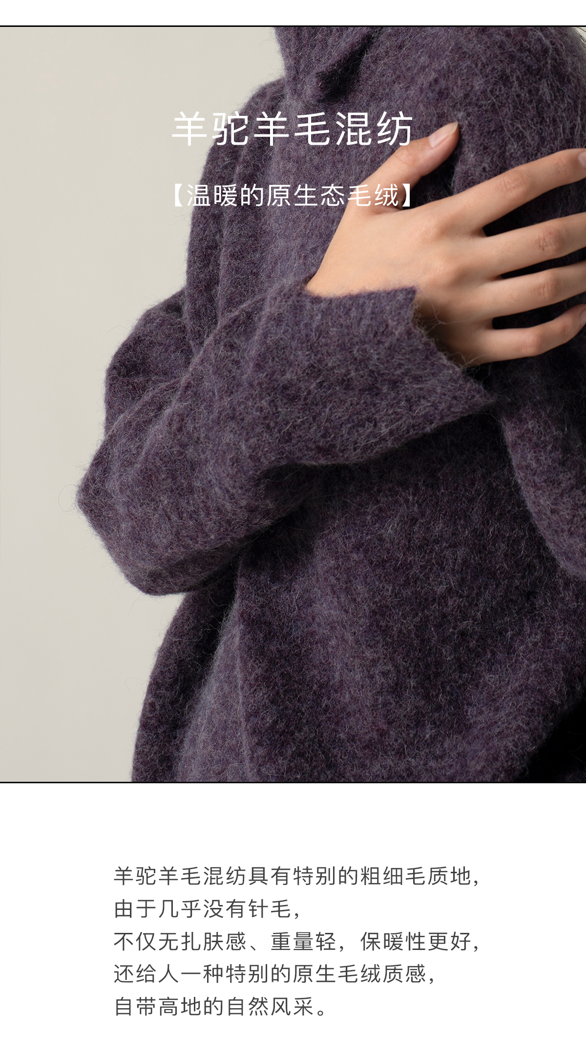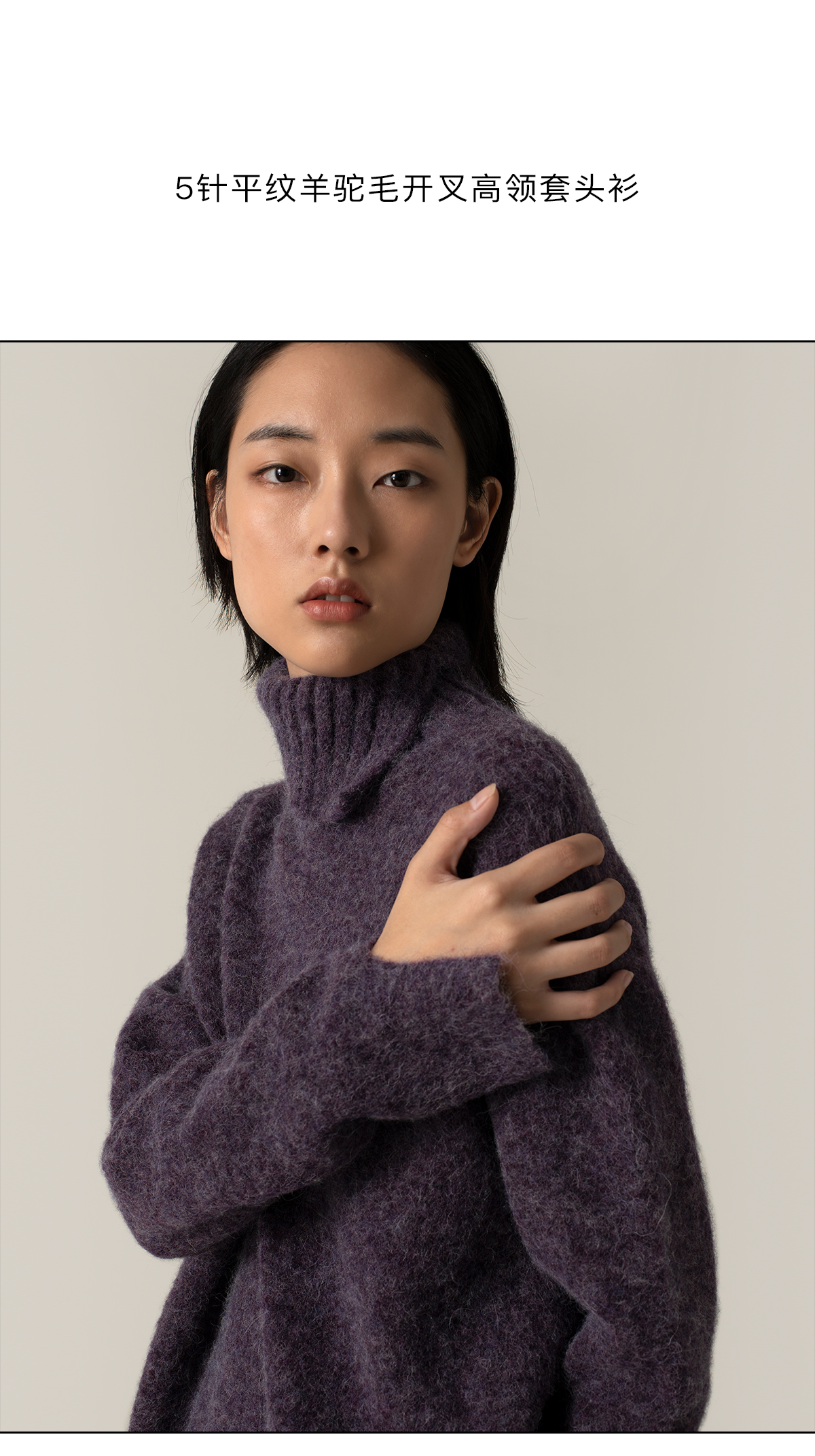 322工房毛绒新视角羊驼毛衣女2022秋冬高开叉圆领针织套头衫A958