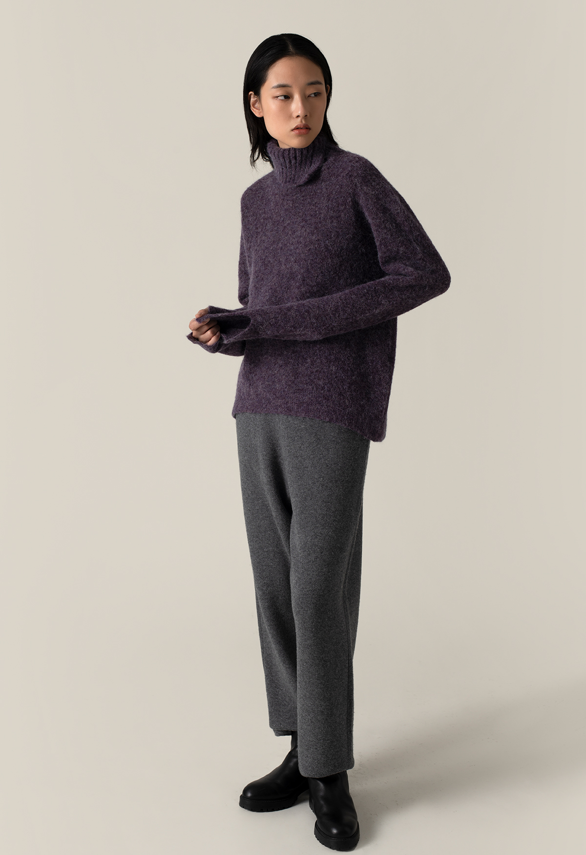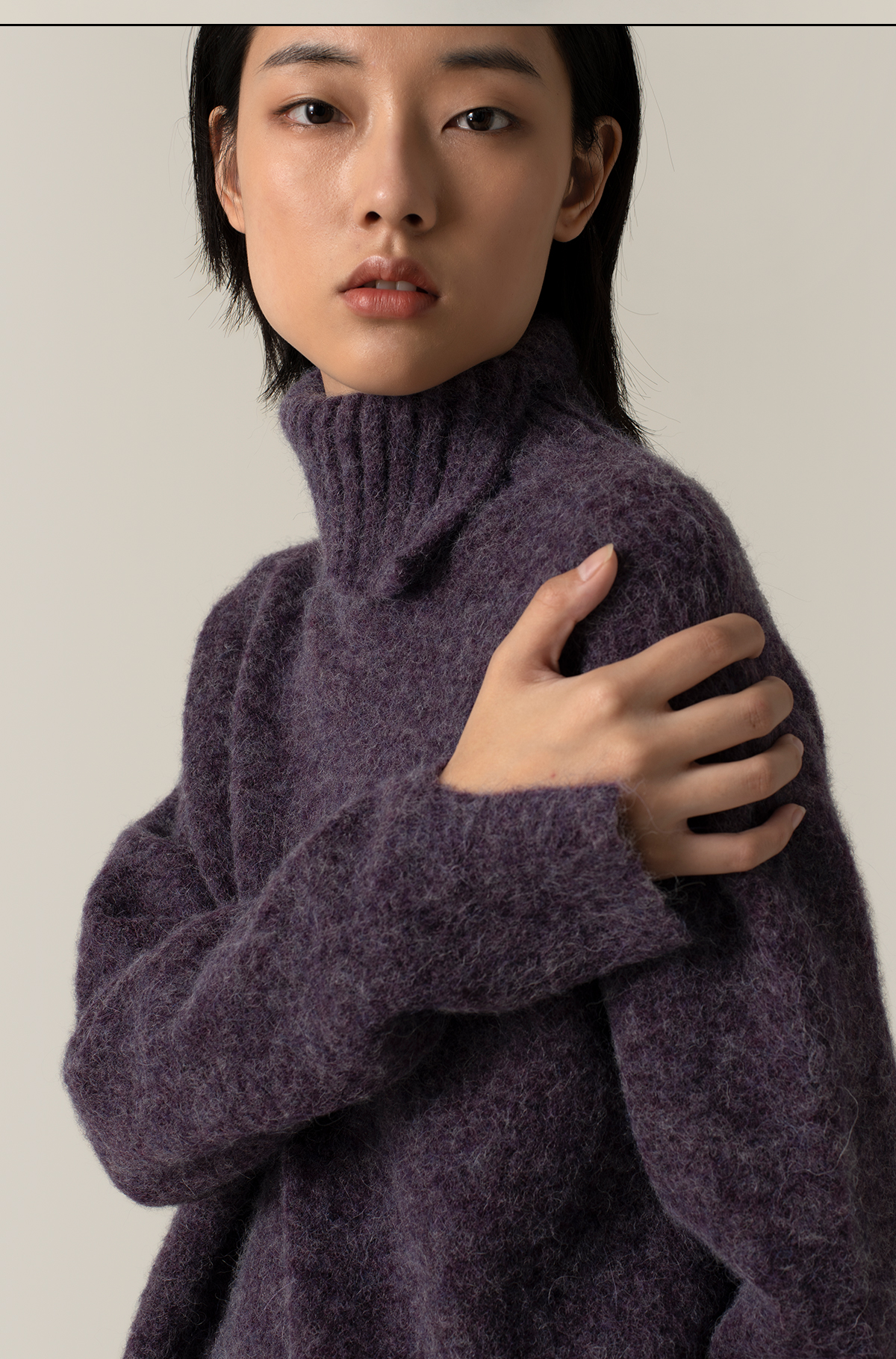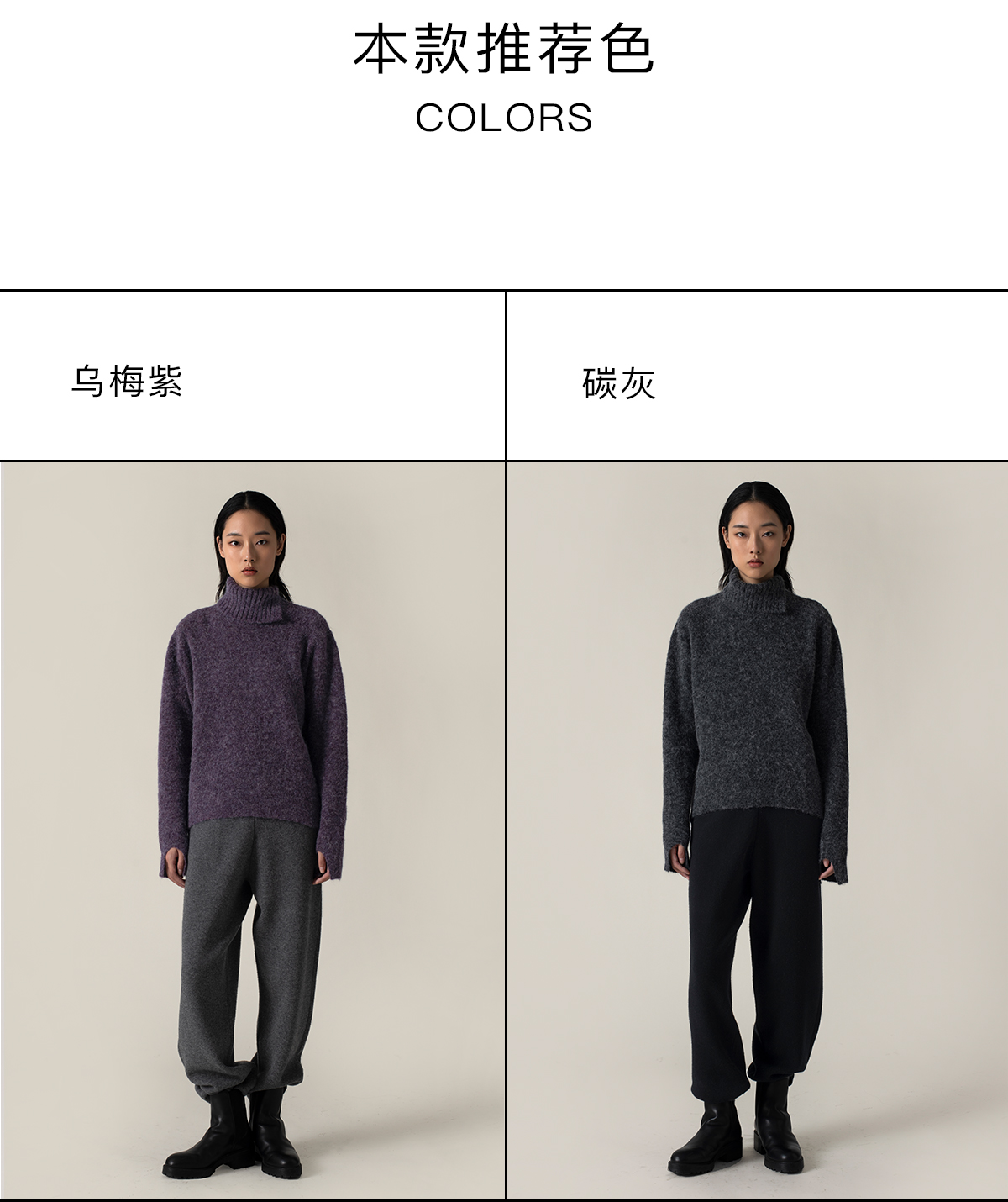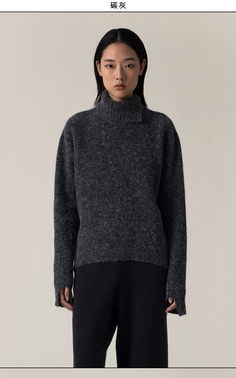 322工房毛绒新视角羊驼毛衣女2022秋冬高开叉圆领针织套头衫A958