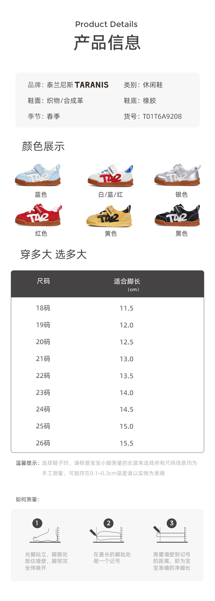 【新品】泰兰尼斯春款婴童段简约撞色多彩学步鞋T01T6A9208