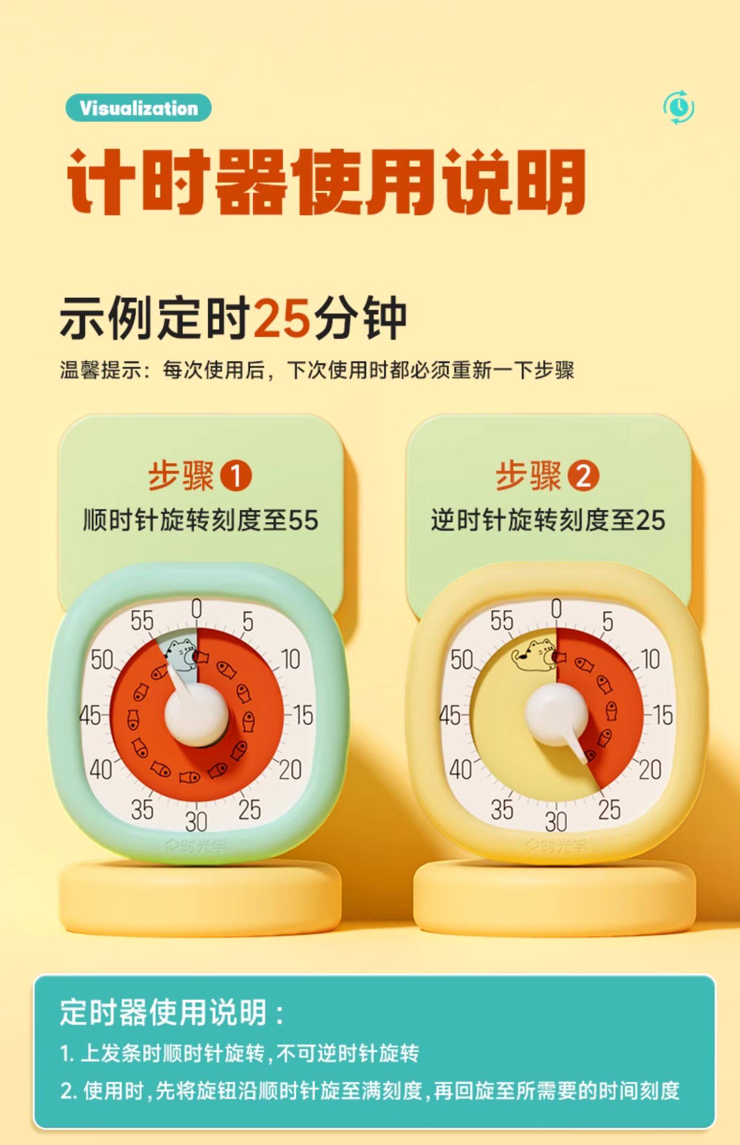 【无需电池的计时器】时光学可视化计时器儿童学习自律神器定时时间管理倒计时提醒闹钟