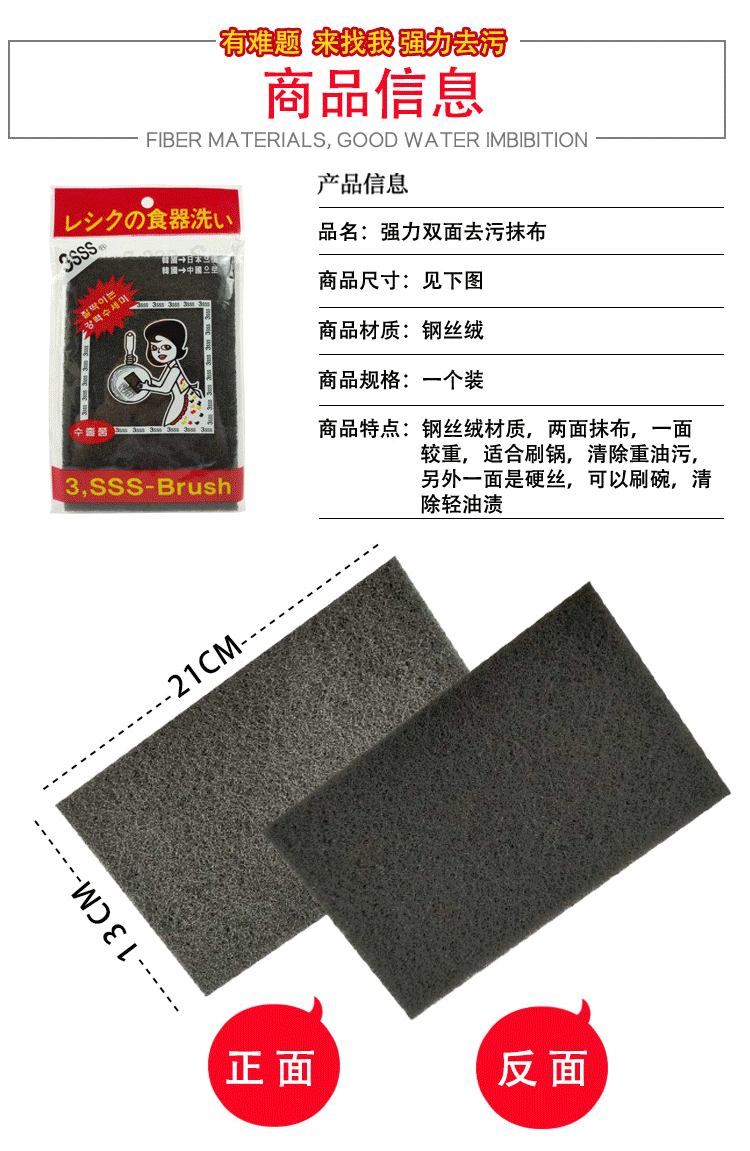 【中欧班列精选6包】韩国3SSS百洁布 原装进口韩国竹炭去污魔力擦百洁布