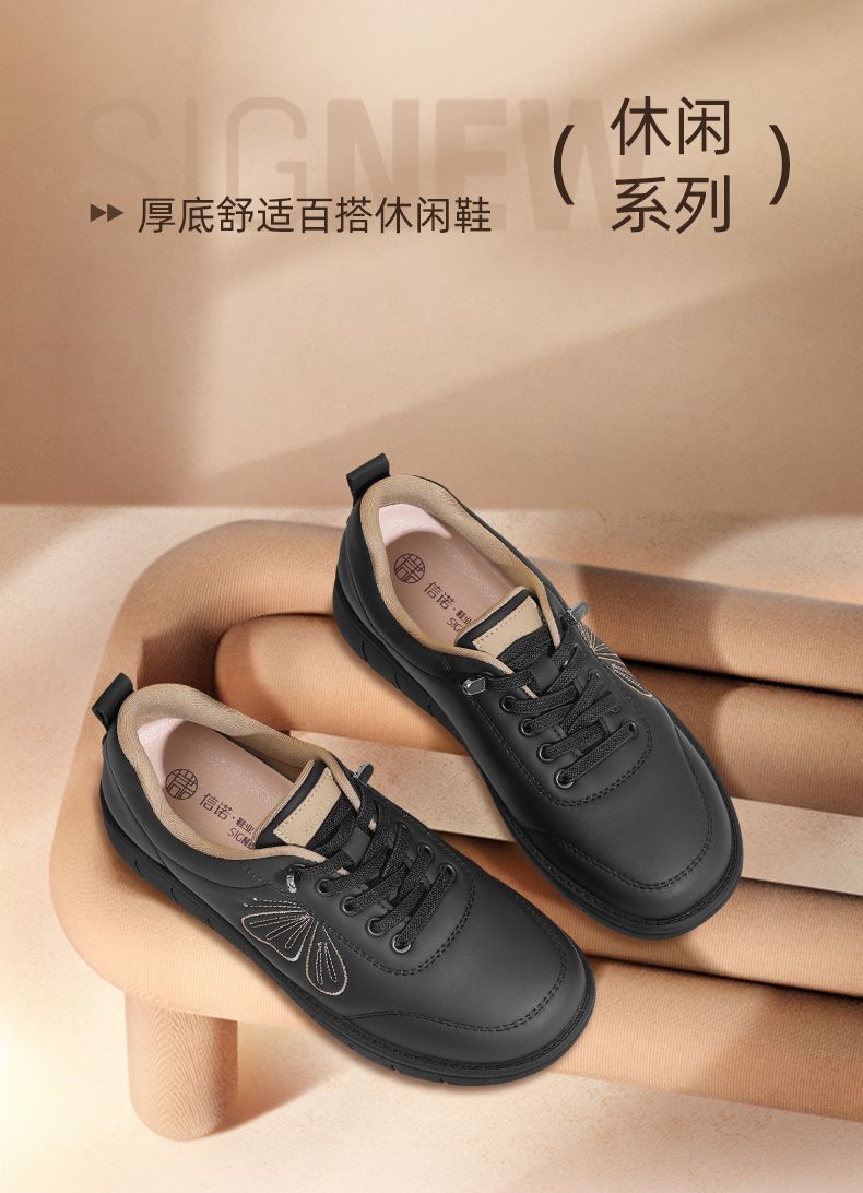 信诺超软底妈妈鞋中老年轻便舒适女鞋子休闲平底皮鞋2025秋季新款5Q2612-2T