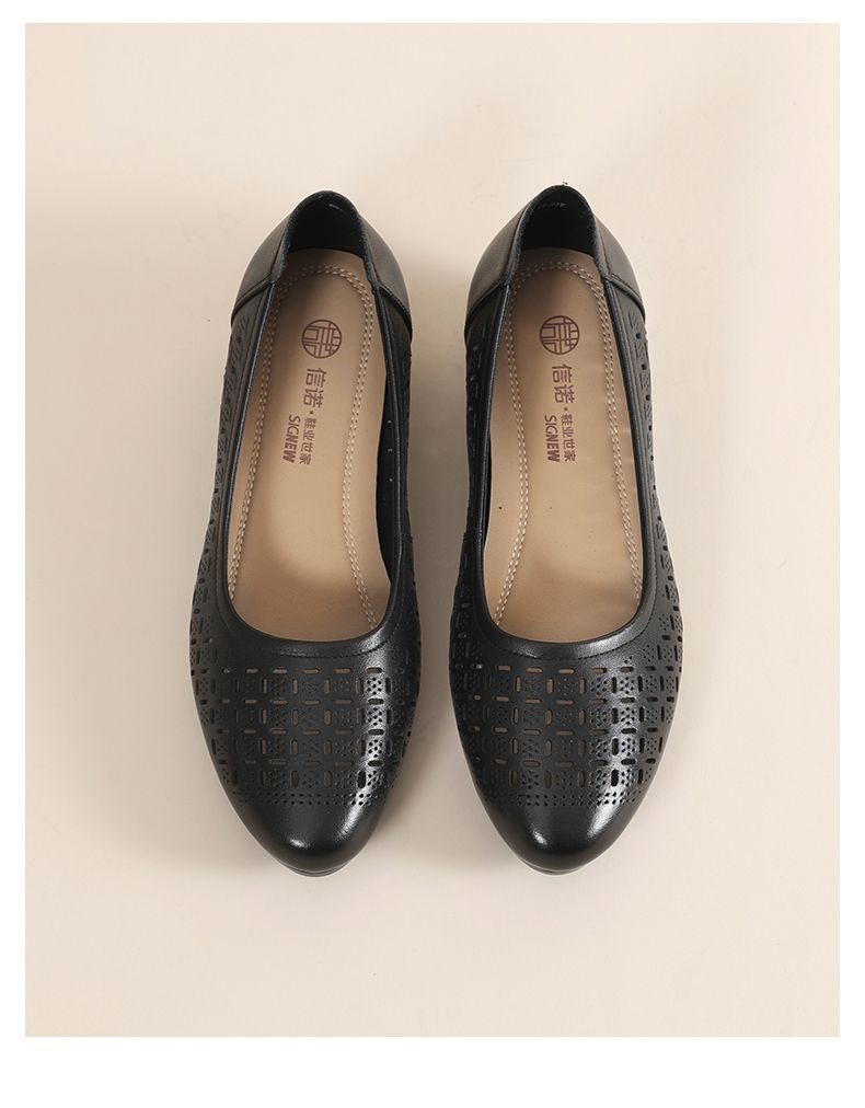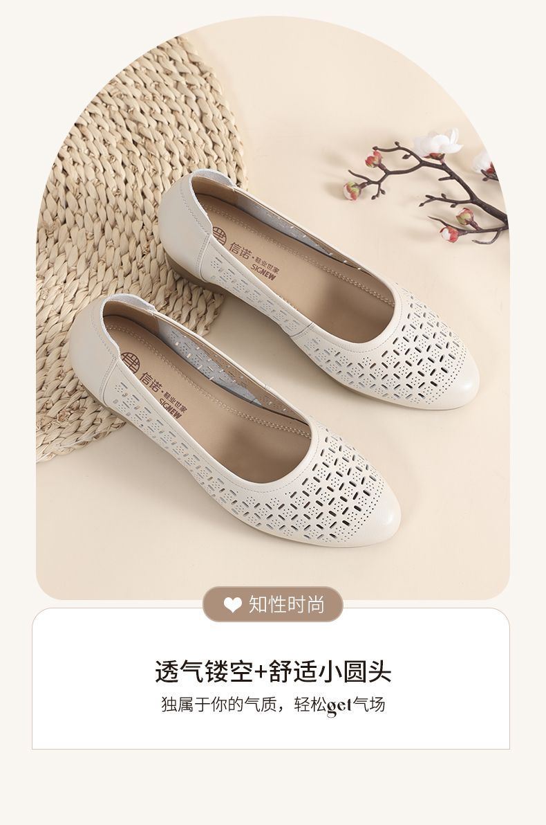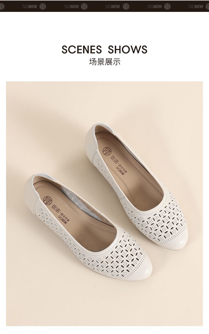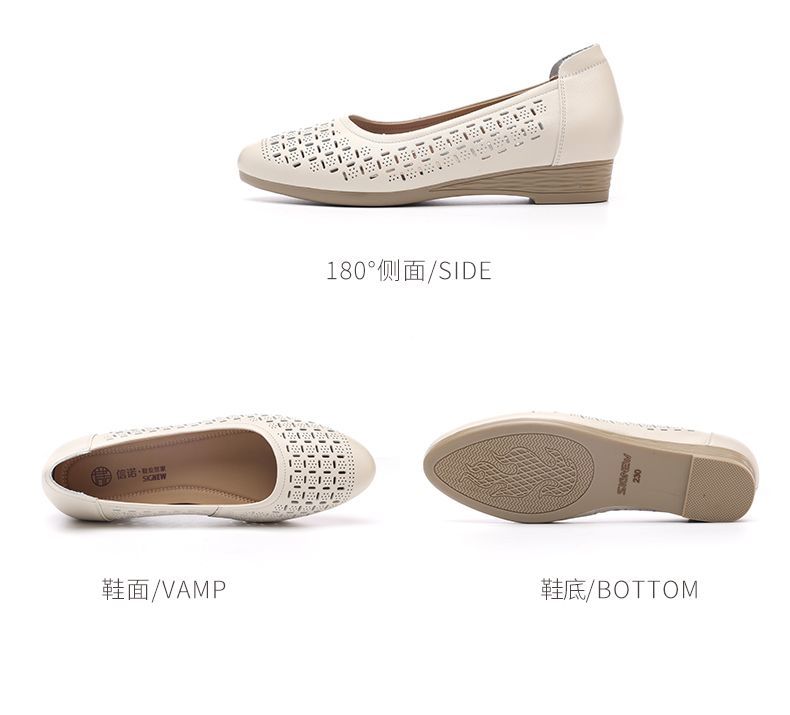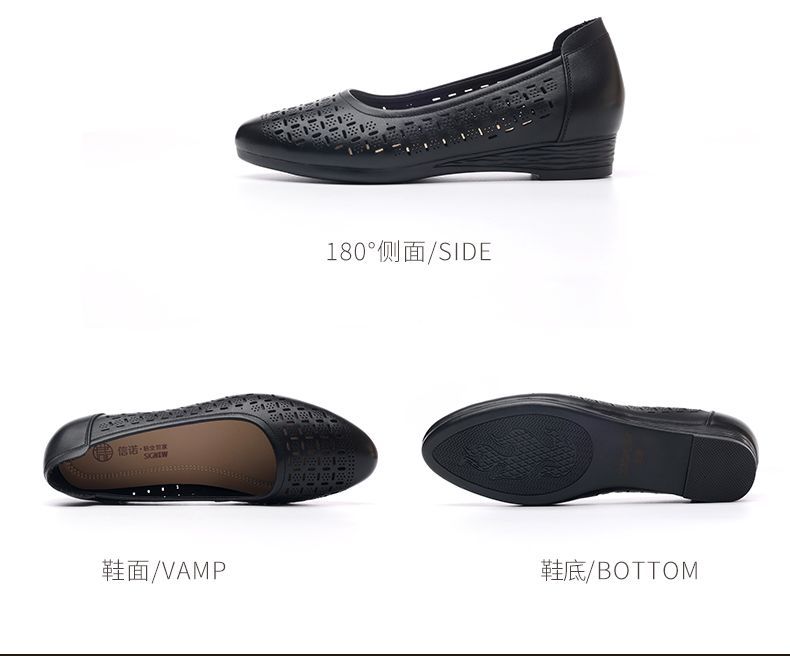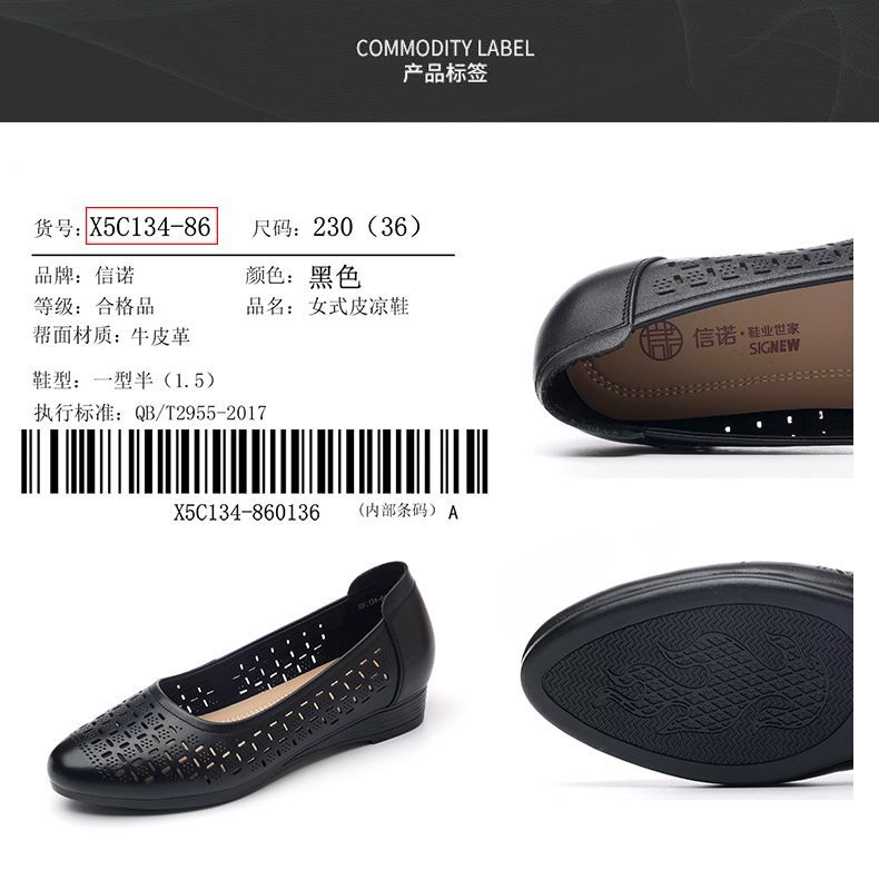 信诺真皮夏季新款平底洞洞鞋软底舒适透气镂空单鞋妈妈凉鞋女鞋子X5C134-86