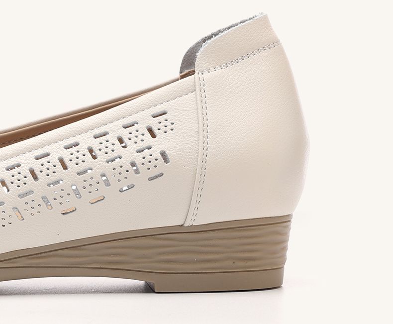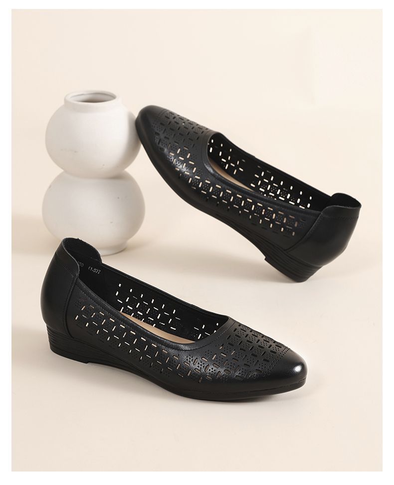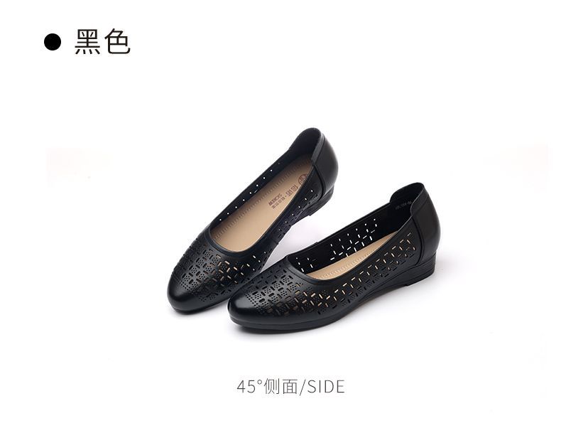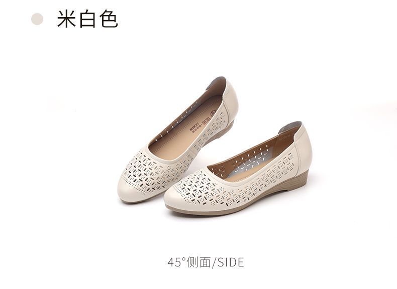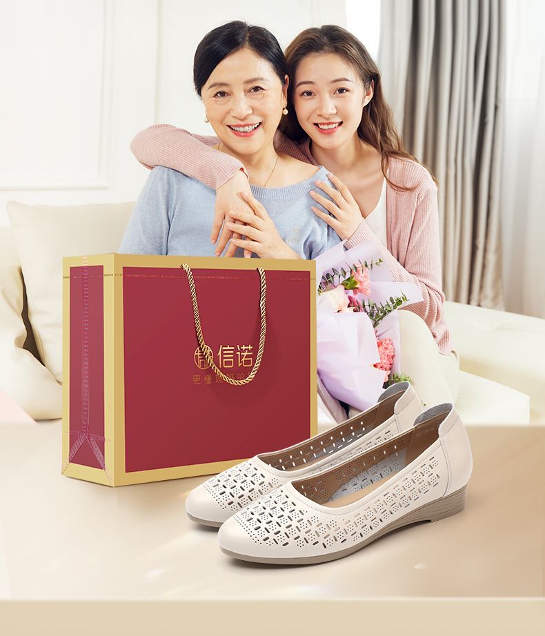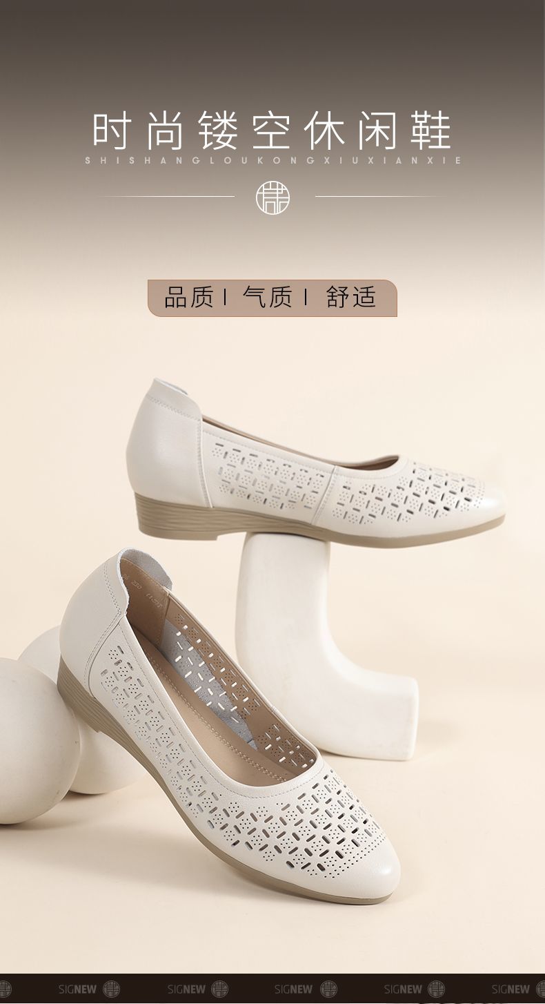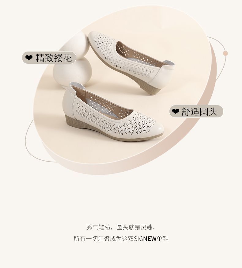 信诺真皮夏季新款平底洞洞鞋软底舒适透气镂空单鞋妈妈凉鞋女鞋子X5C134-86