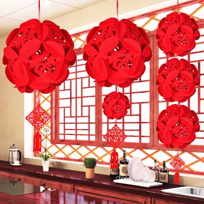【福字绣球】无纺布喜字绣球婚房装饰新年布置福字绣球
