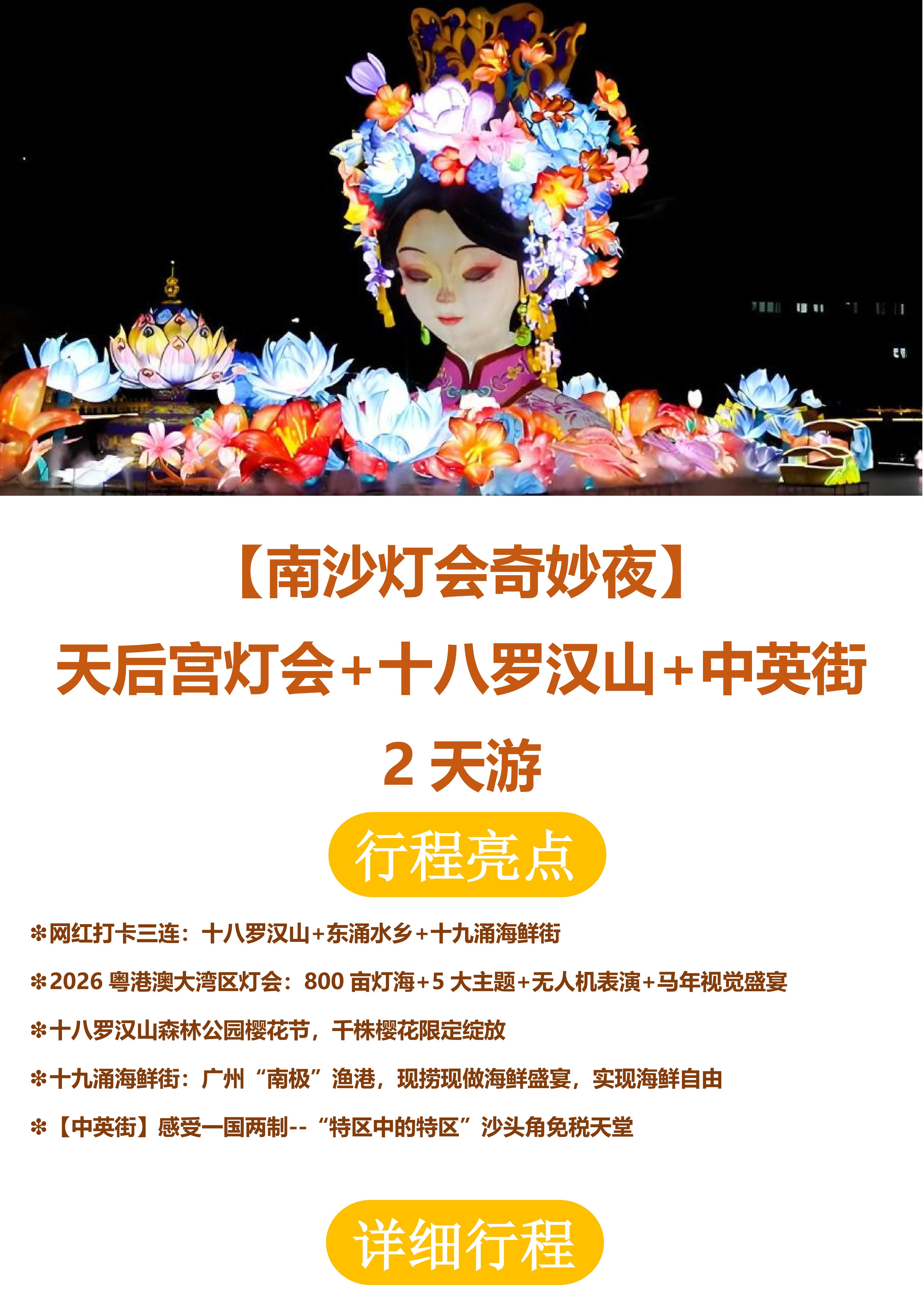 【南沙灯会奇妙夜】天后宫灯会+十八罗汉山+中英街 2 天游