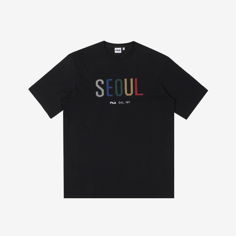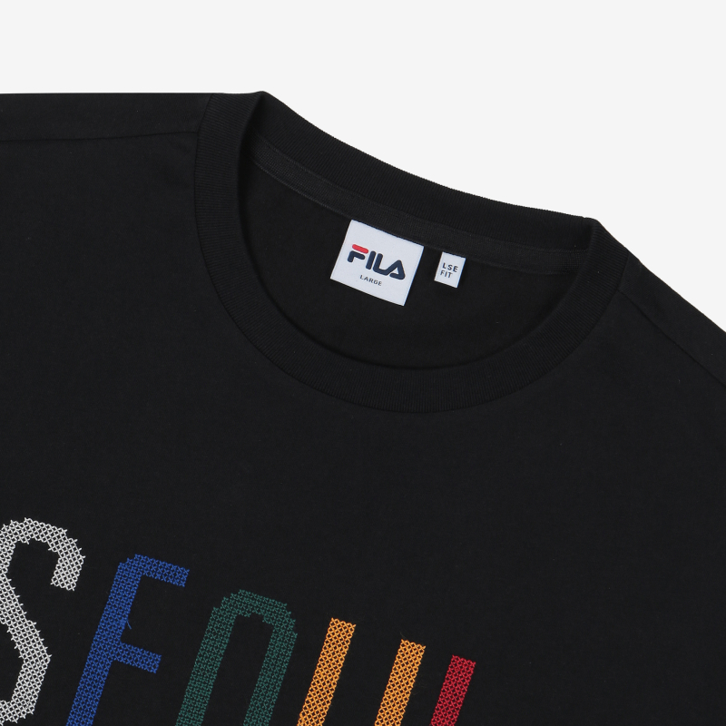 FILA斐乐韩国首尔刺绣LOGO时尚短袖FS2RSC2148X_BLKJPY带授权招加盟代理