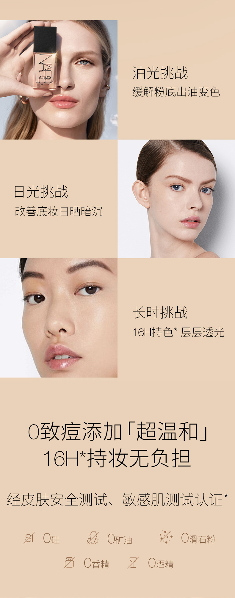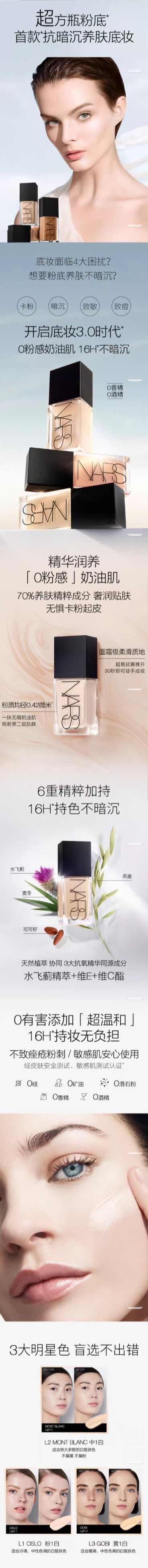 【肖战同款】纳斯NARS超方瓶流光美肌粉底液 养肤持色持妆抗暗沉遮瑕