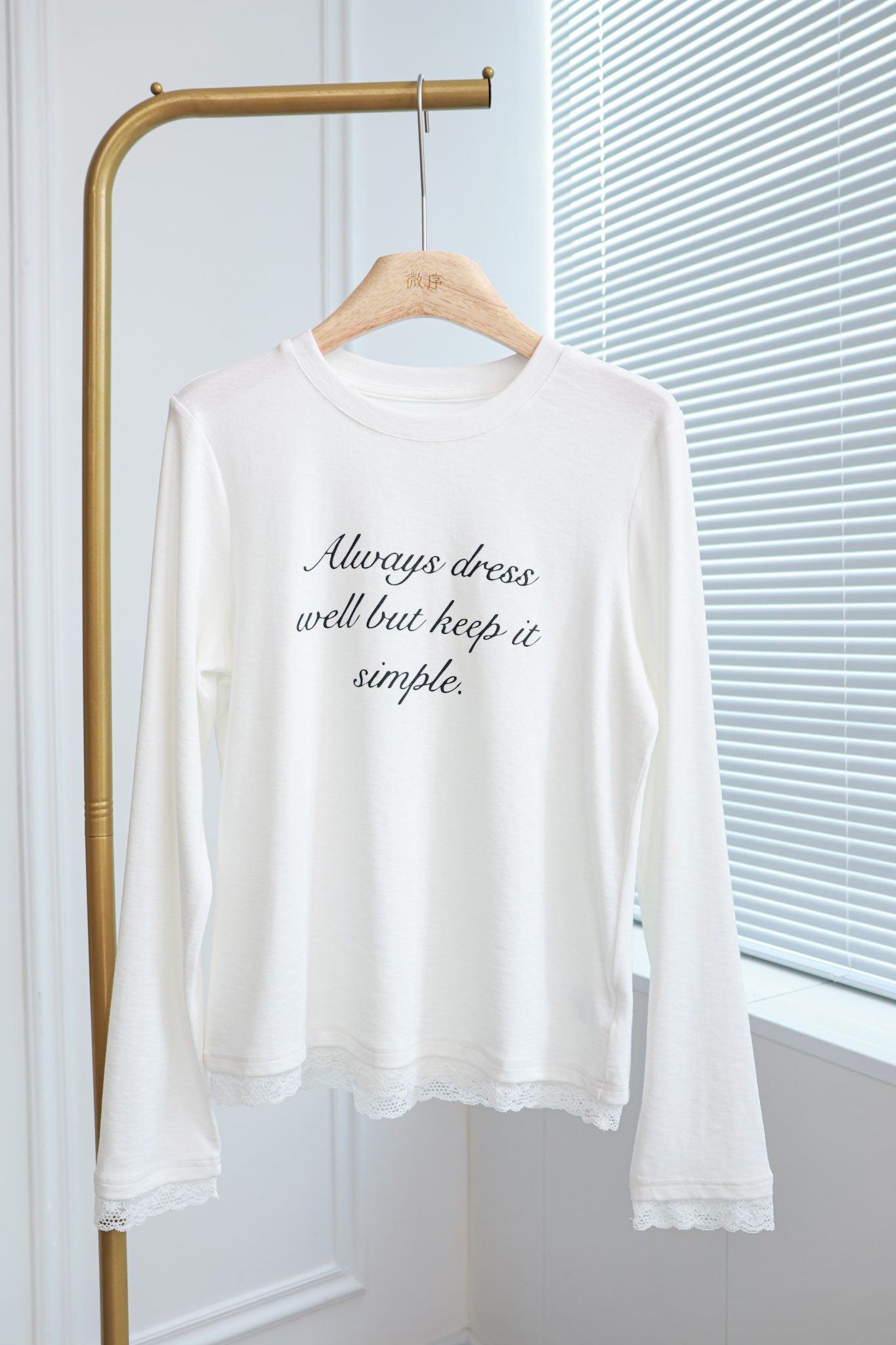 英文旋调|韩系蕾丝拼接T恤