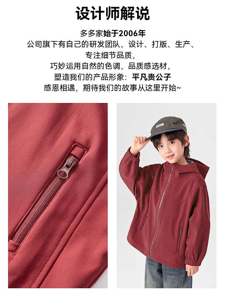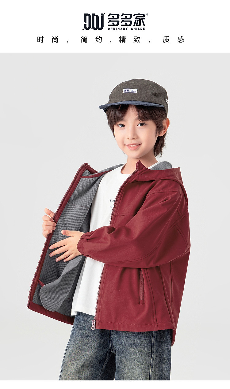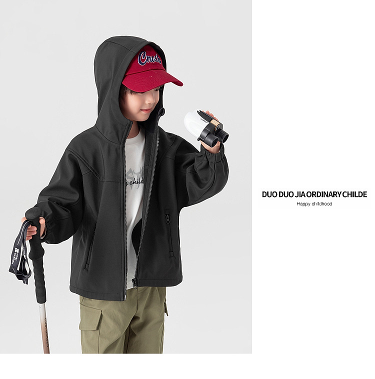 【件件底价,童装双倍积分】多多家男童外套三防2026春秋款新款儿童中大童加绒休闲连帽上衣潮11372
