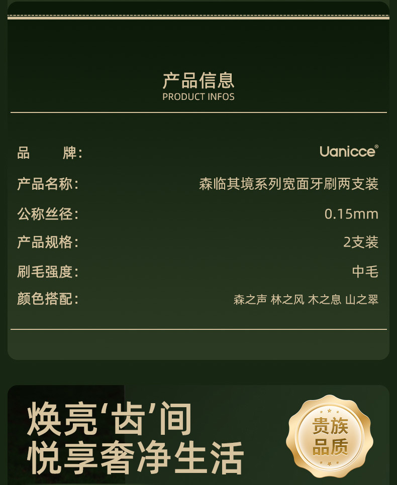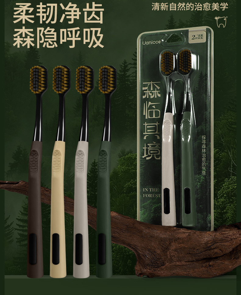 「高颜值!Uanicce森系软毛牙刷」双重绵密植毛绒感刷丝宽头洁齿成人牙刷家用口腔护理