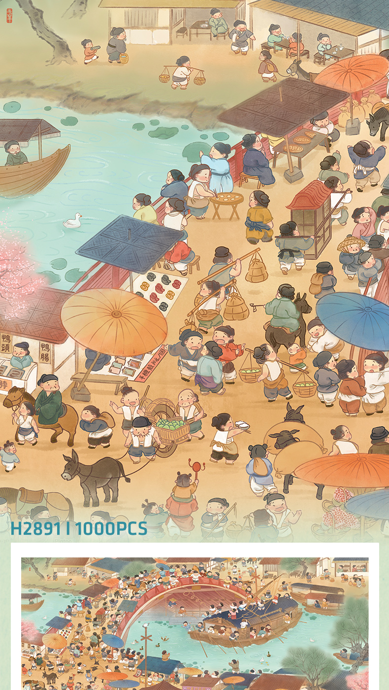 1000片 全景平面拼图 塑料拼图H2891 春羊-清明闹市图