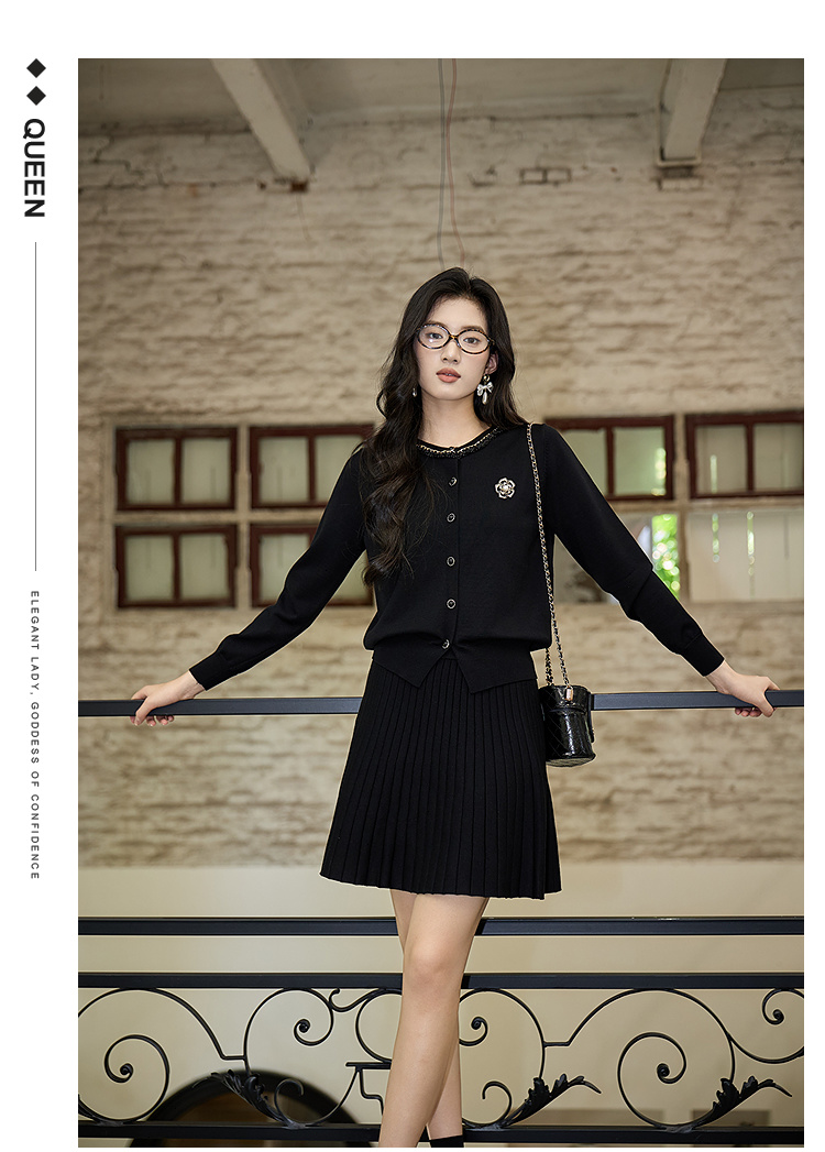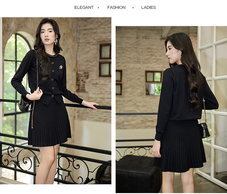 奢姿大码女装2025秋季钉珠减龄两件套胖妹妹坑条设计时尚针织套装9853994277AB