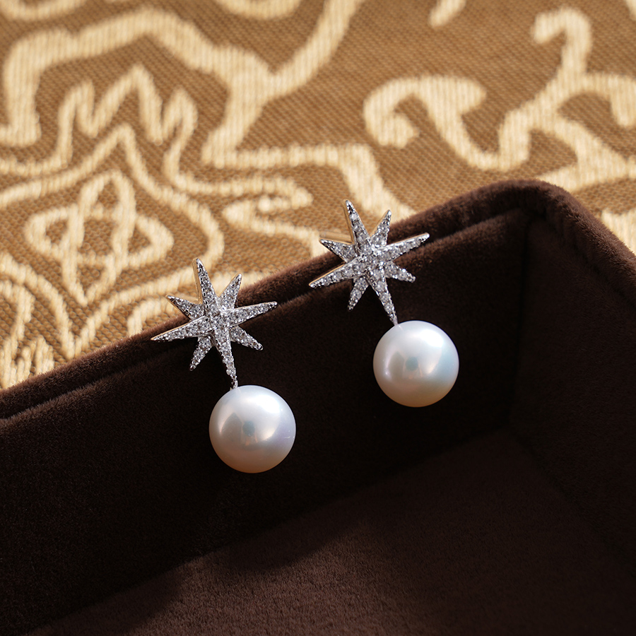 【寓意】:八芒星解构重组珍珠,以微镶工艺展现出星辰质感,凝萃宇宙奥秘于耳畔,瞬间提升佩戴者时尚气场。