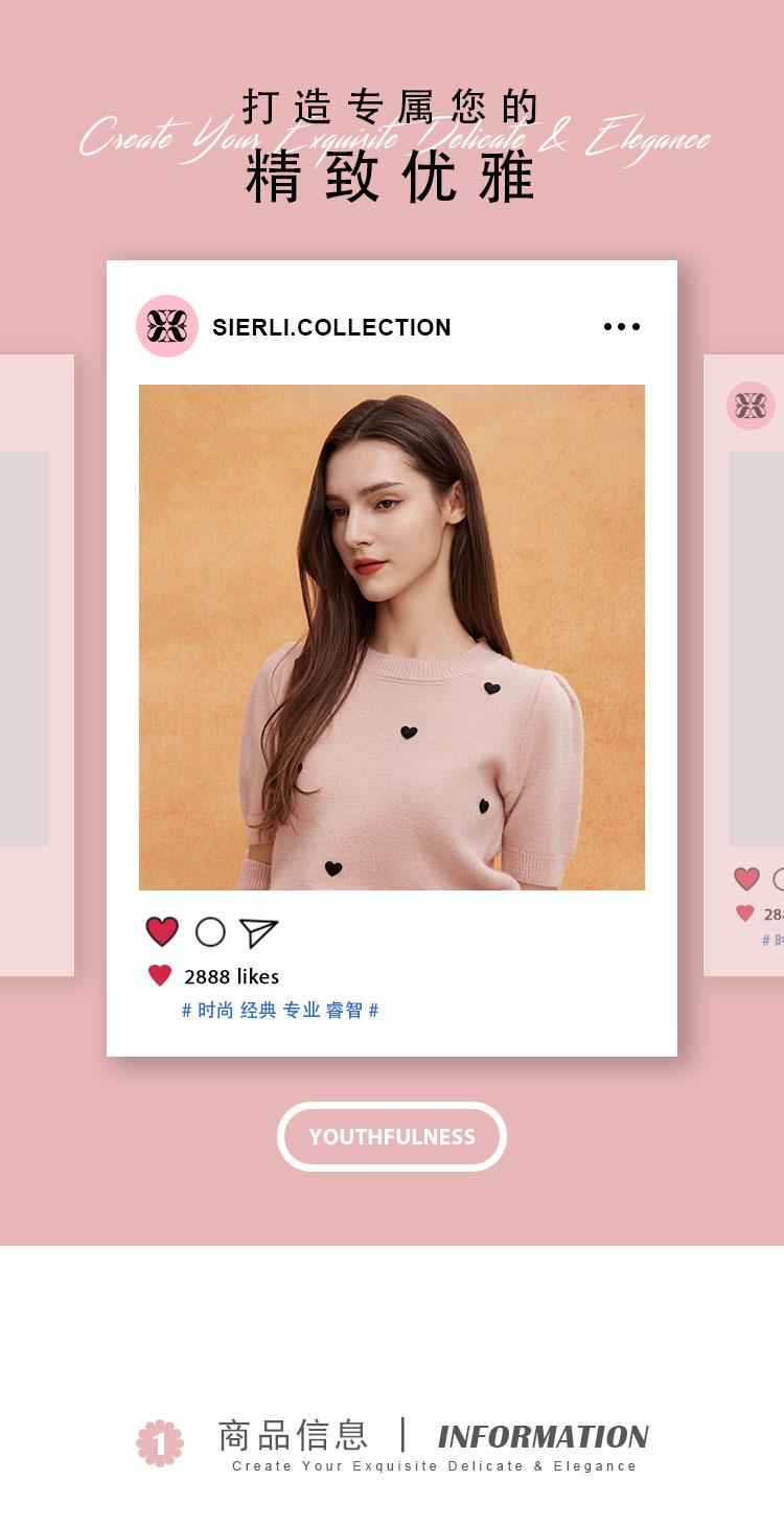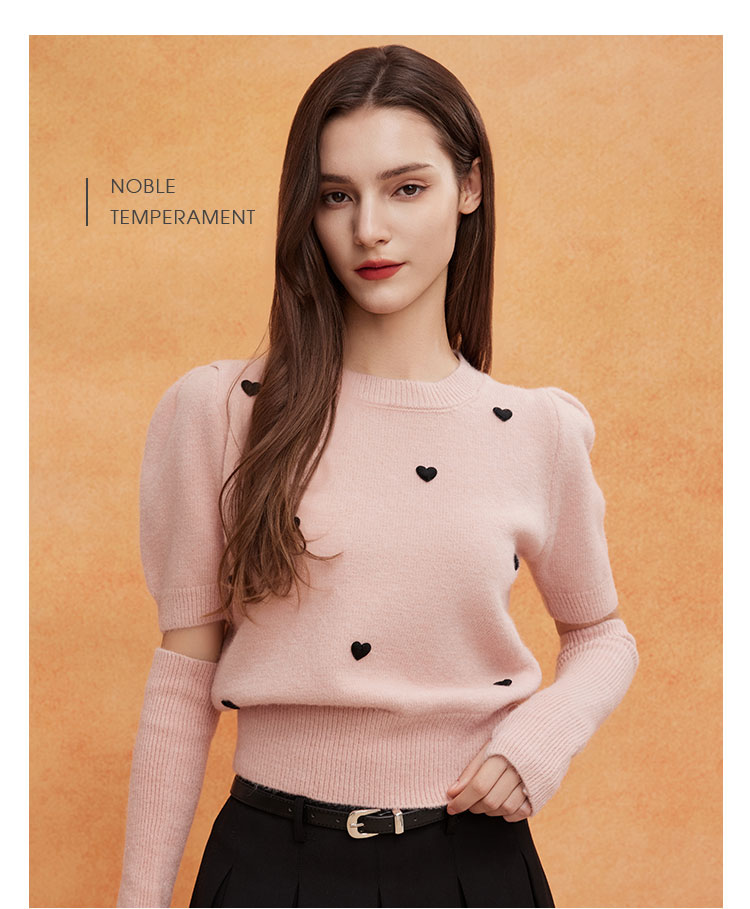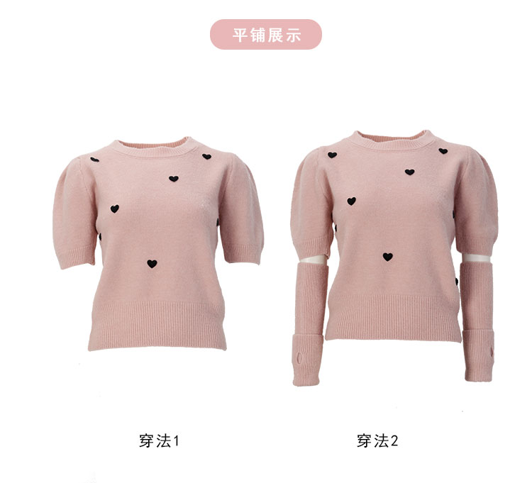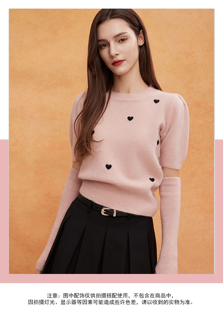 QE639斯尔丽2025春季新款节庆提花小爱心显瘦短袖配袖套时尚针织上衣