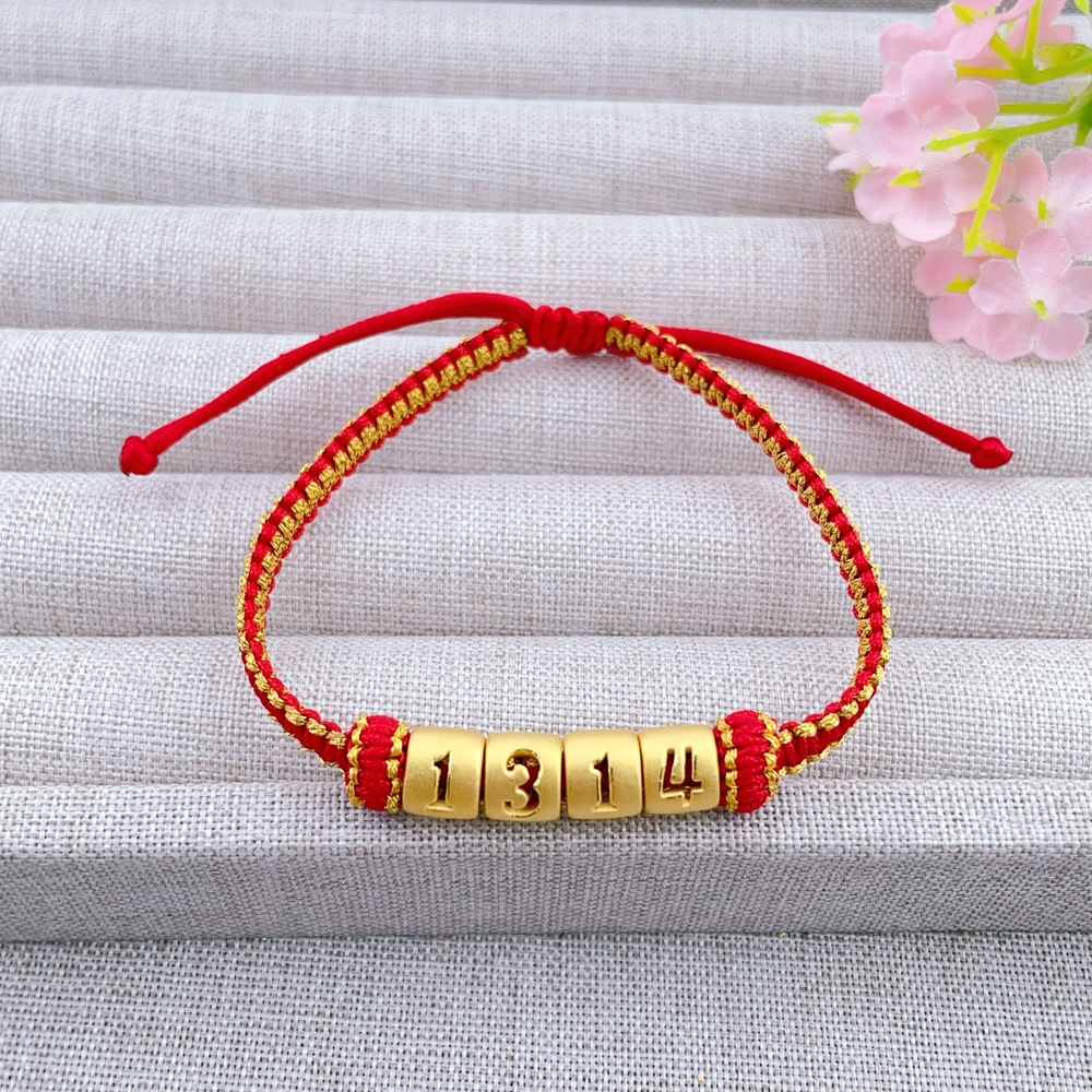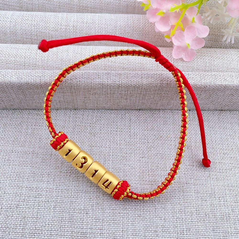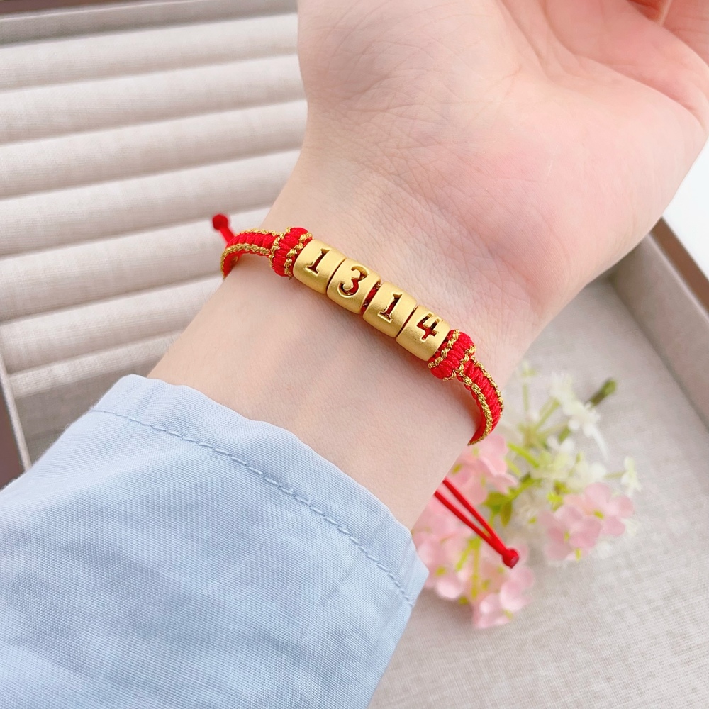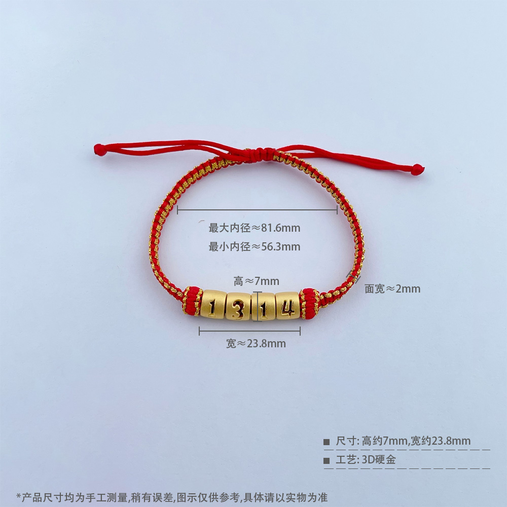 【限时7.5折】足金 #520 #情侣 3D硬金空心可调节编织手串情人节浪漫1314字体爱心心形手串成品手串·(AJ3DSC00274)【补手工费可以换新的绳子】预售产品下单后不退款不退货不换货不补差