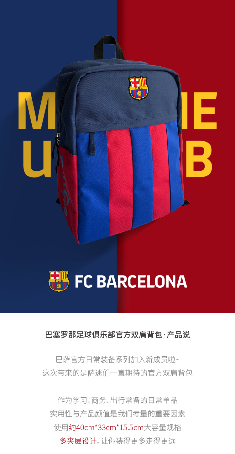 巴塞罗那俱乐部商品丨巴萨新款双肩包足球运动包球迷周边书包