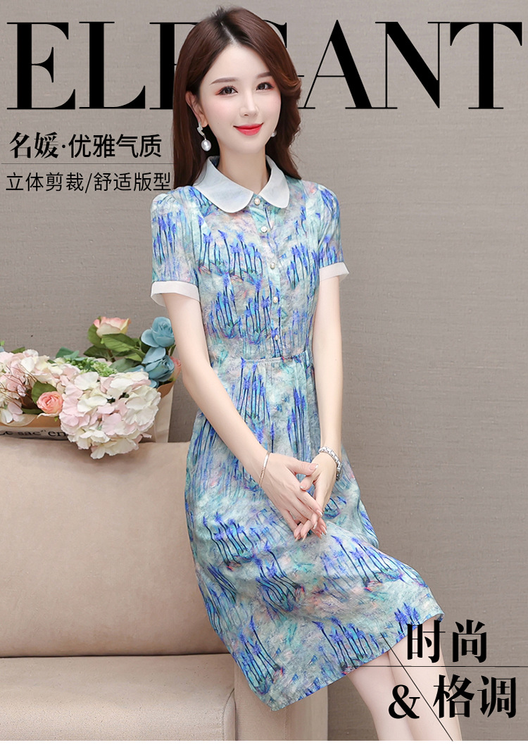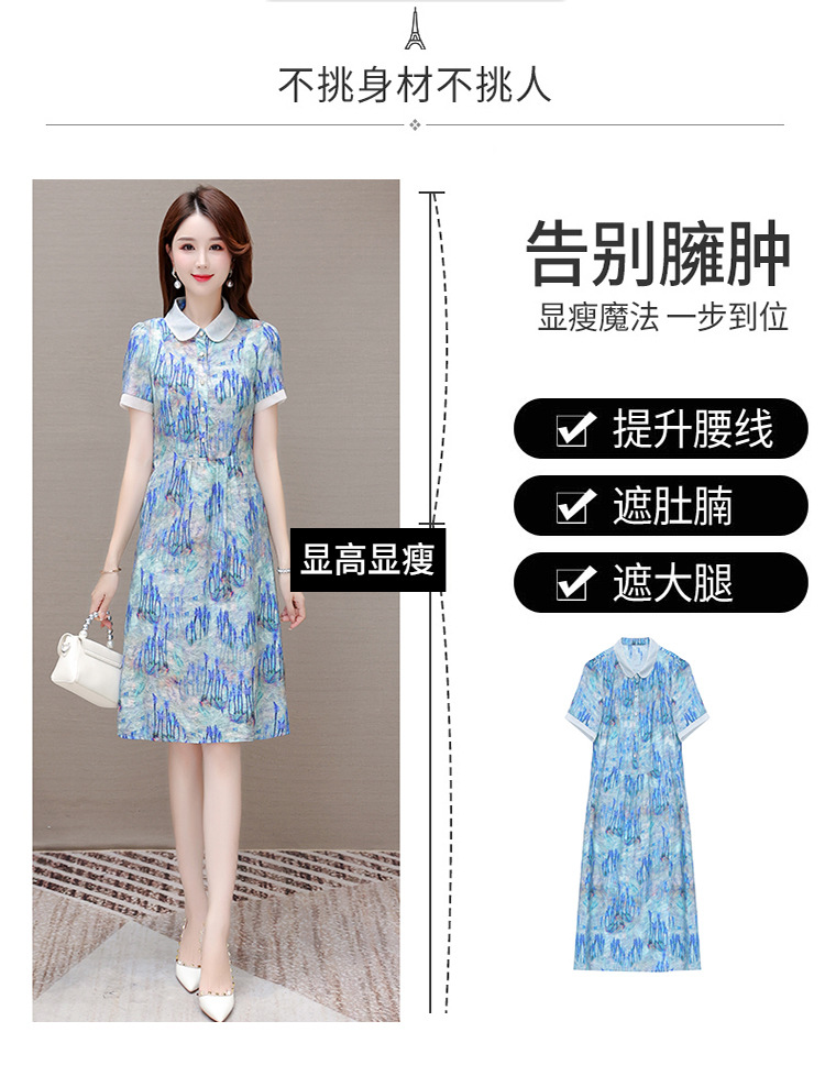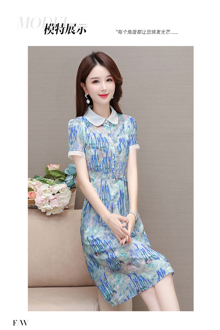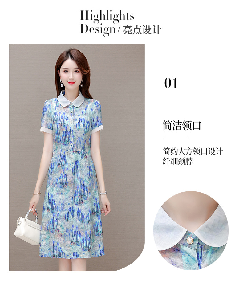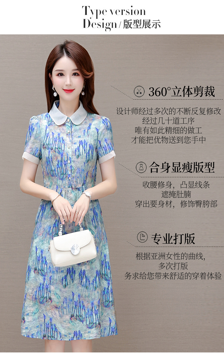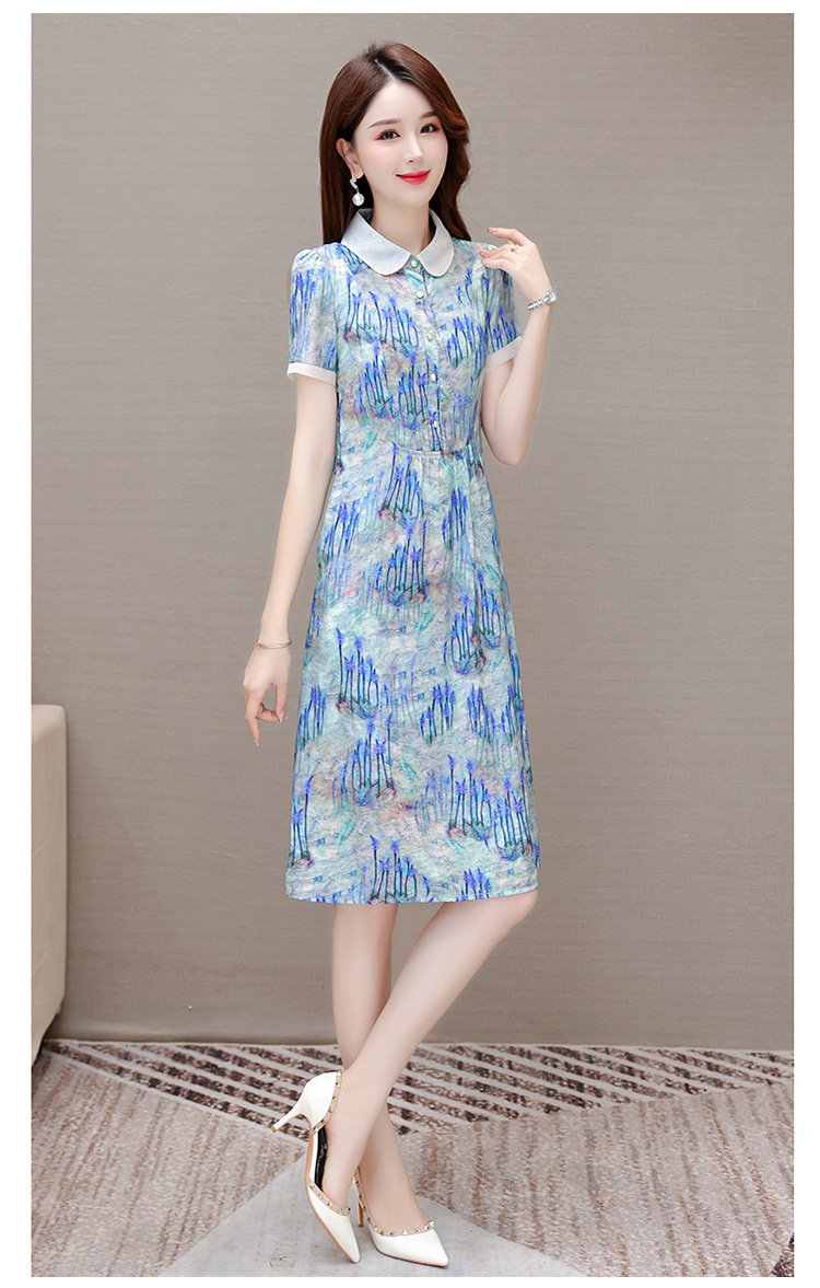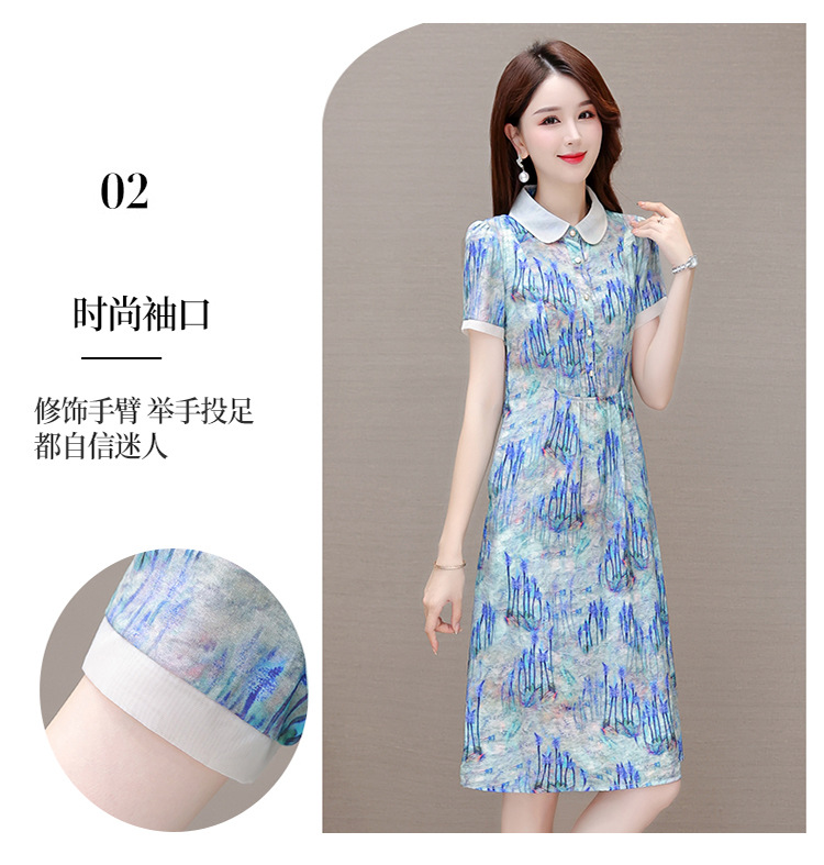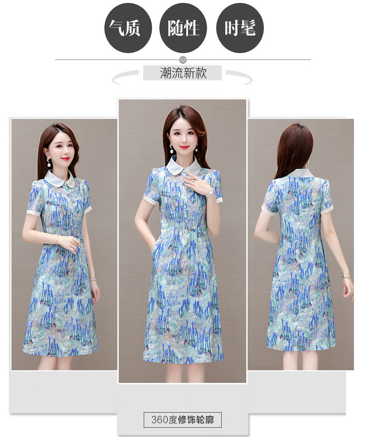 修身气质,印花时尚中长款A字裙夏款娃娃领短袖雪纺连衣裙QYM-XQD-34B23935-L