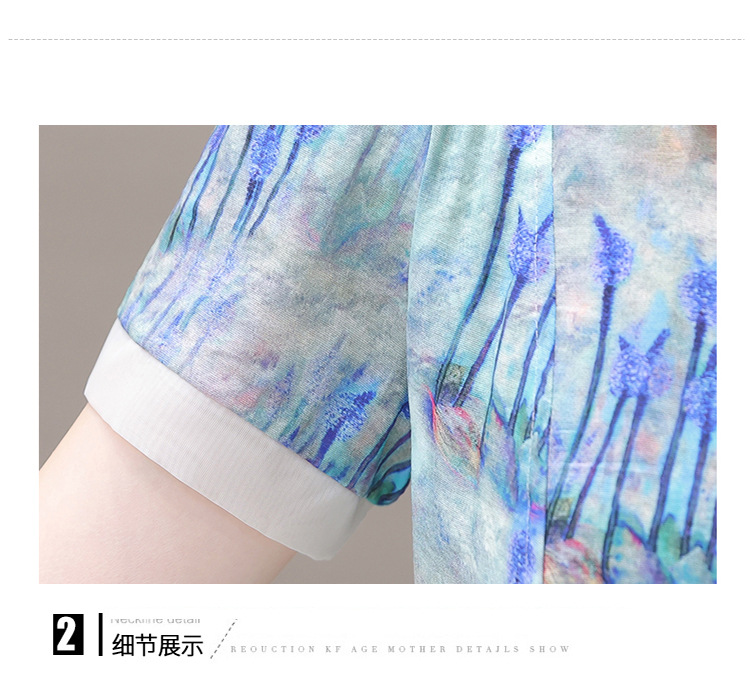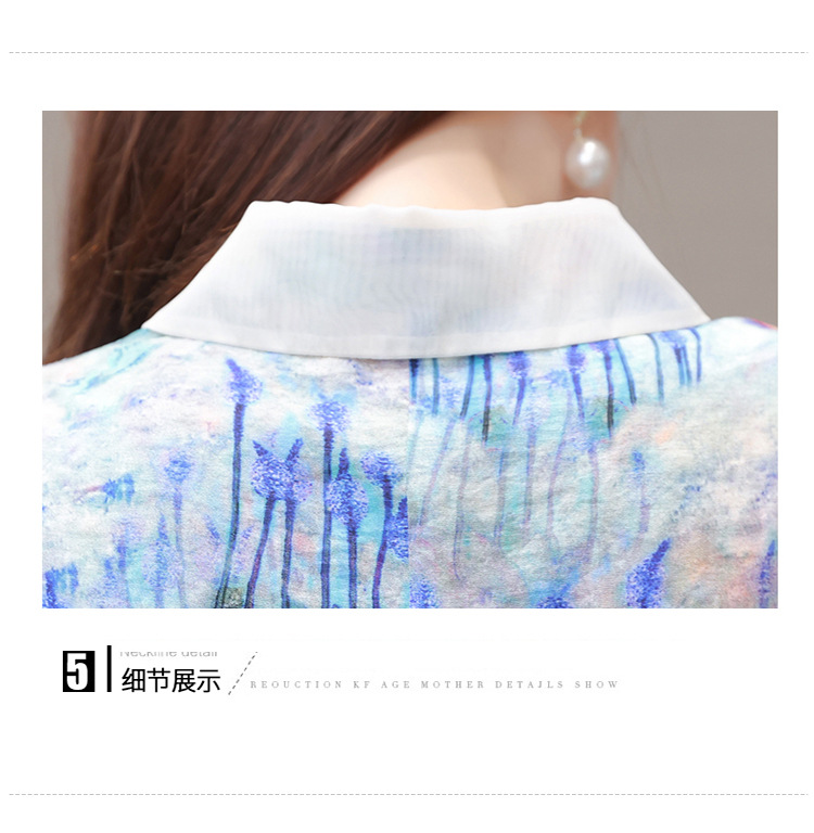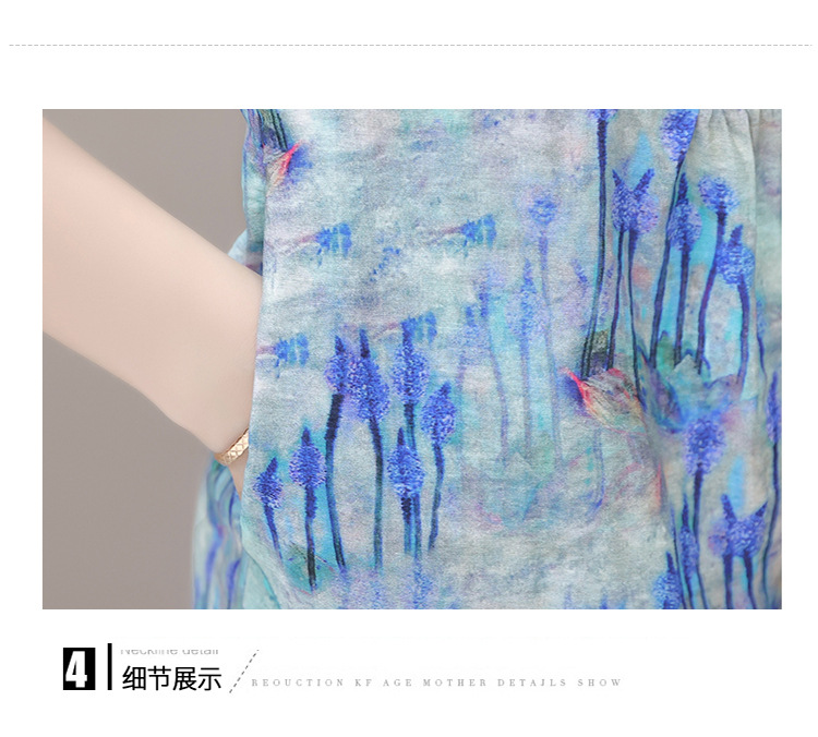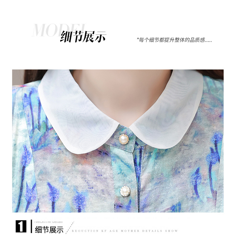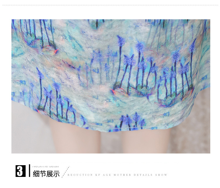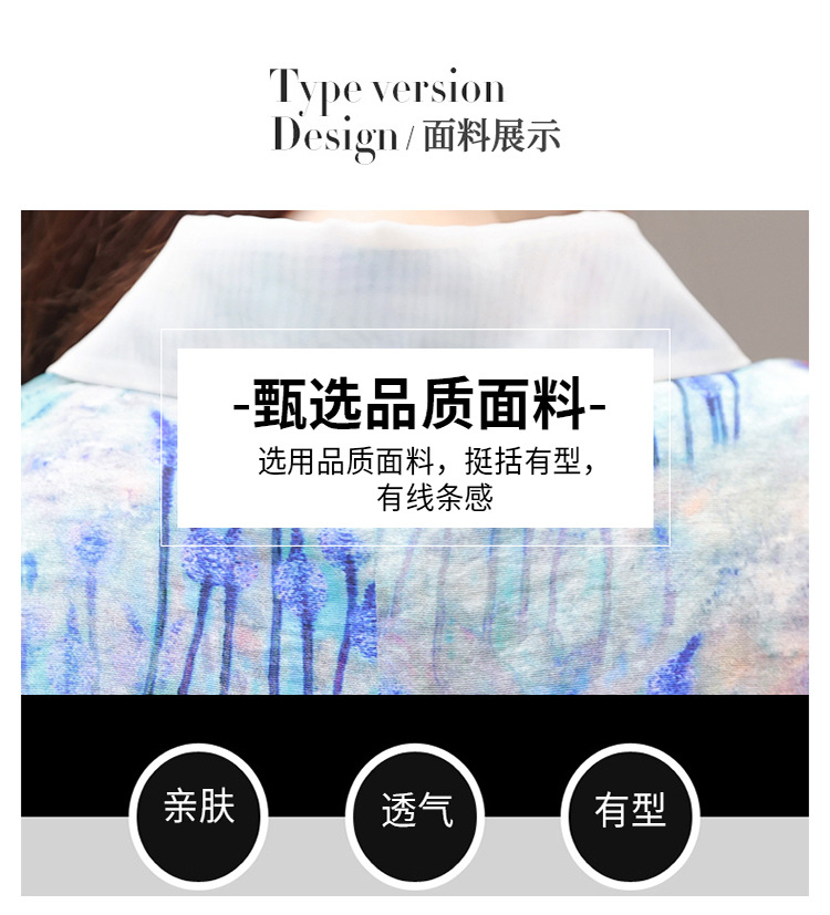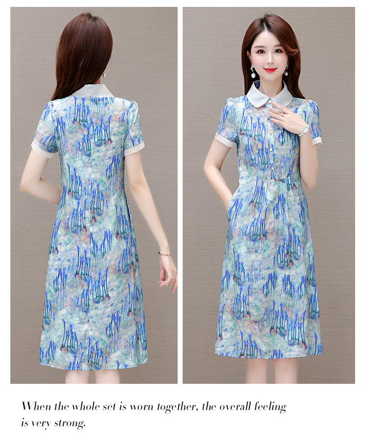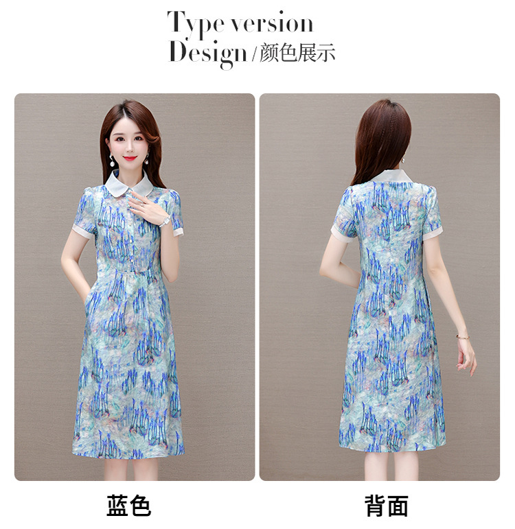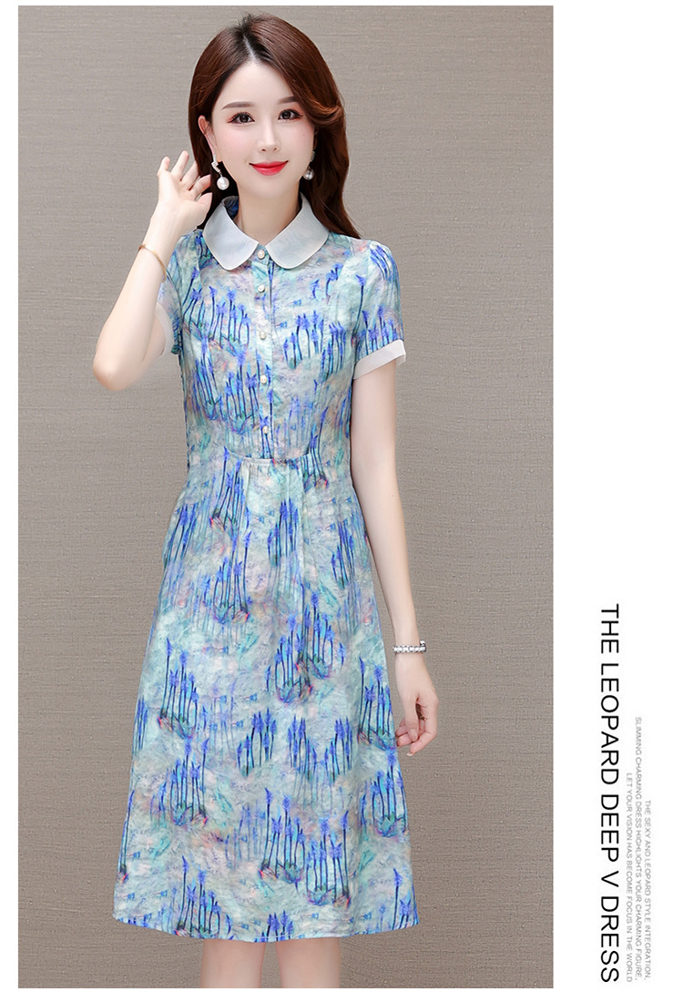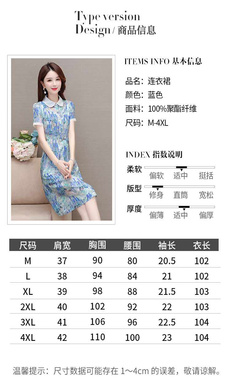修身气质,印花时尚中长款A字裙夏款娃娃领短袖雪纺连衣裙QYM-XQD-34B23935-L
