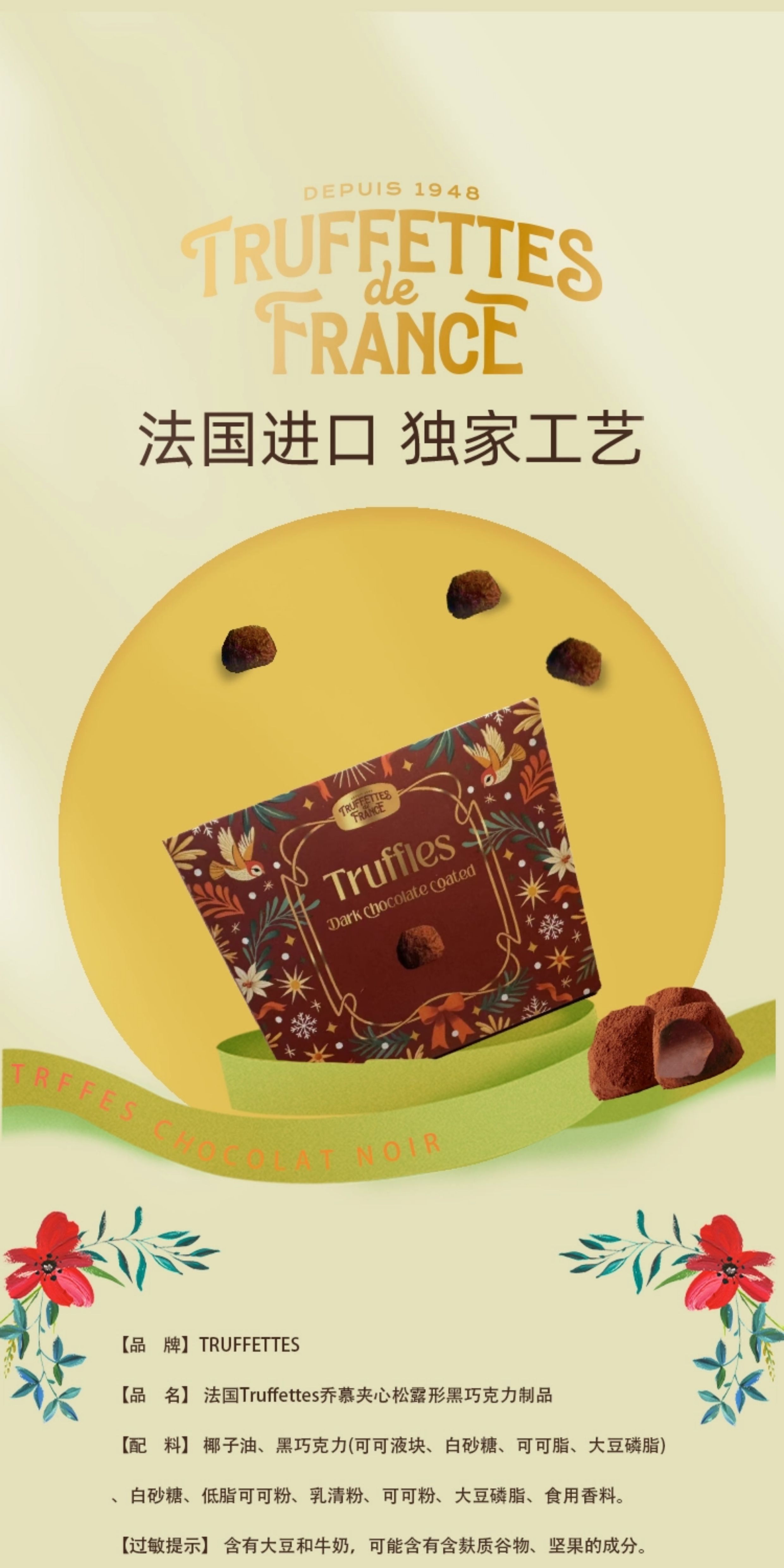 法国Truffettes乔慕夹心松露形黑巧克力制品120g/044948 夹心松露形黑巧克力