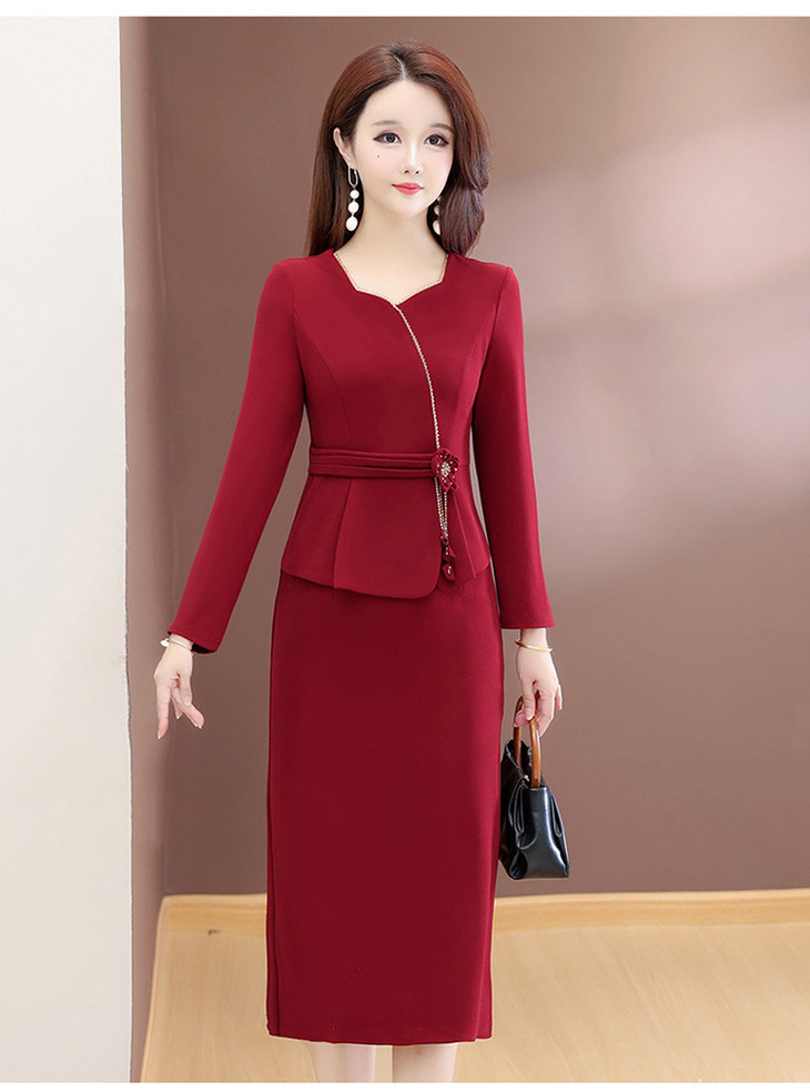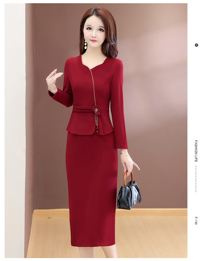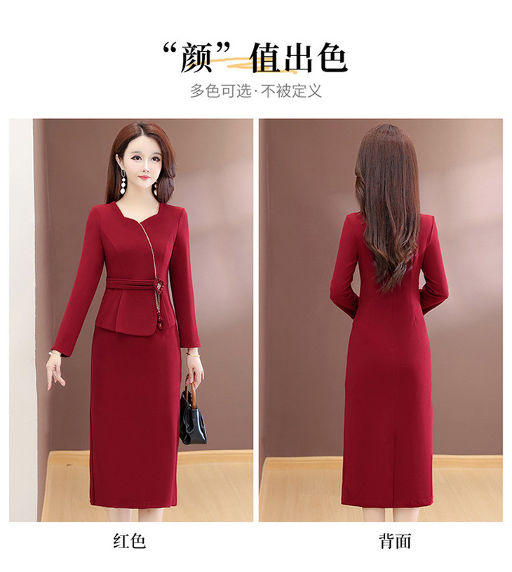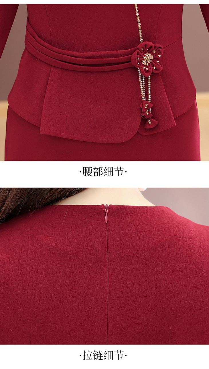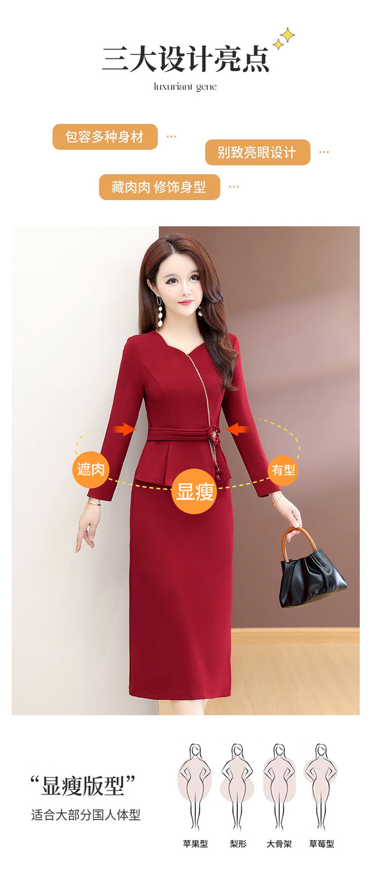 红色喜庆包臀裙中长款花朵假两件礼服裙QYM-YJ-25ZB915-Y 商品图2