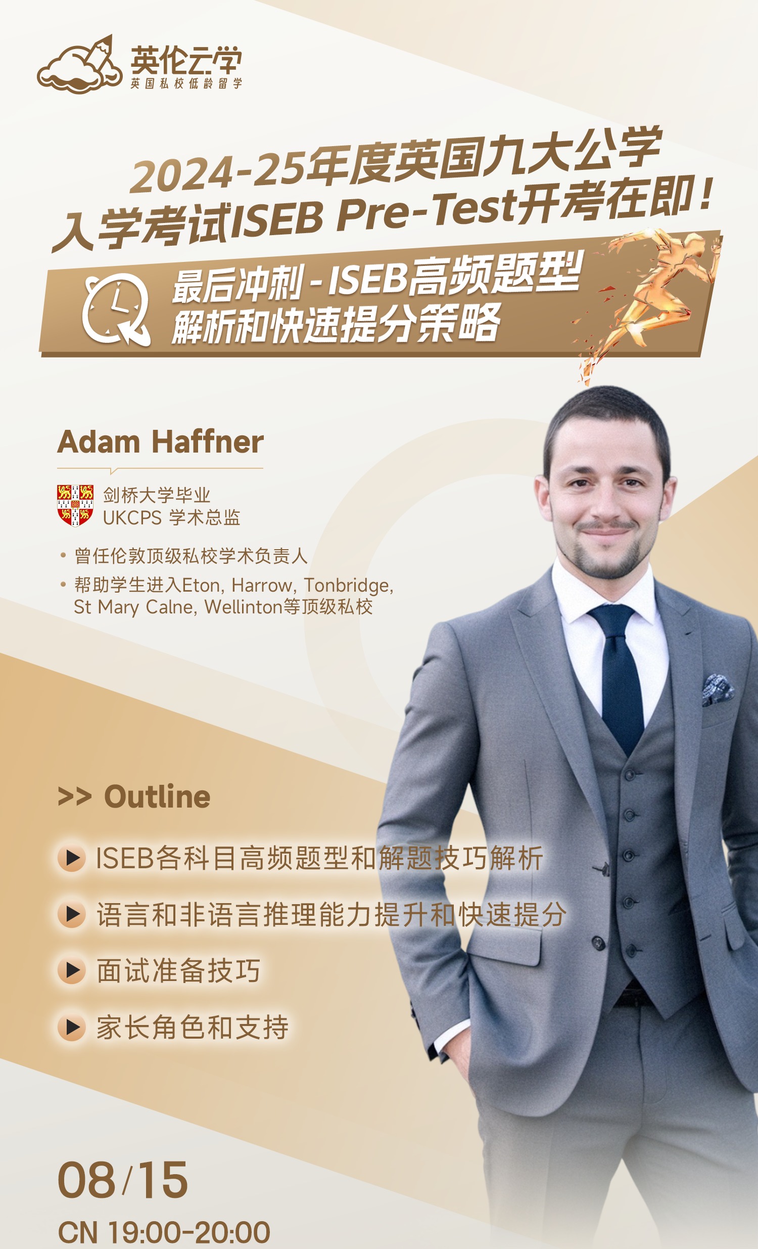【8.15低龄留学】2024-25年度英国九大公学入学考试ISEB Pre-Test开考在即!最后冲刺ISEB高频题型,解析和快速提分策略!