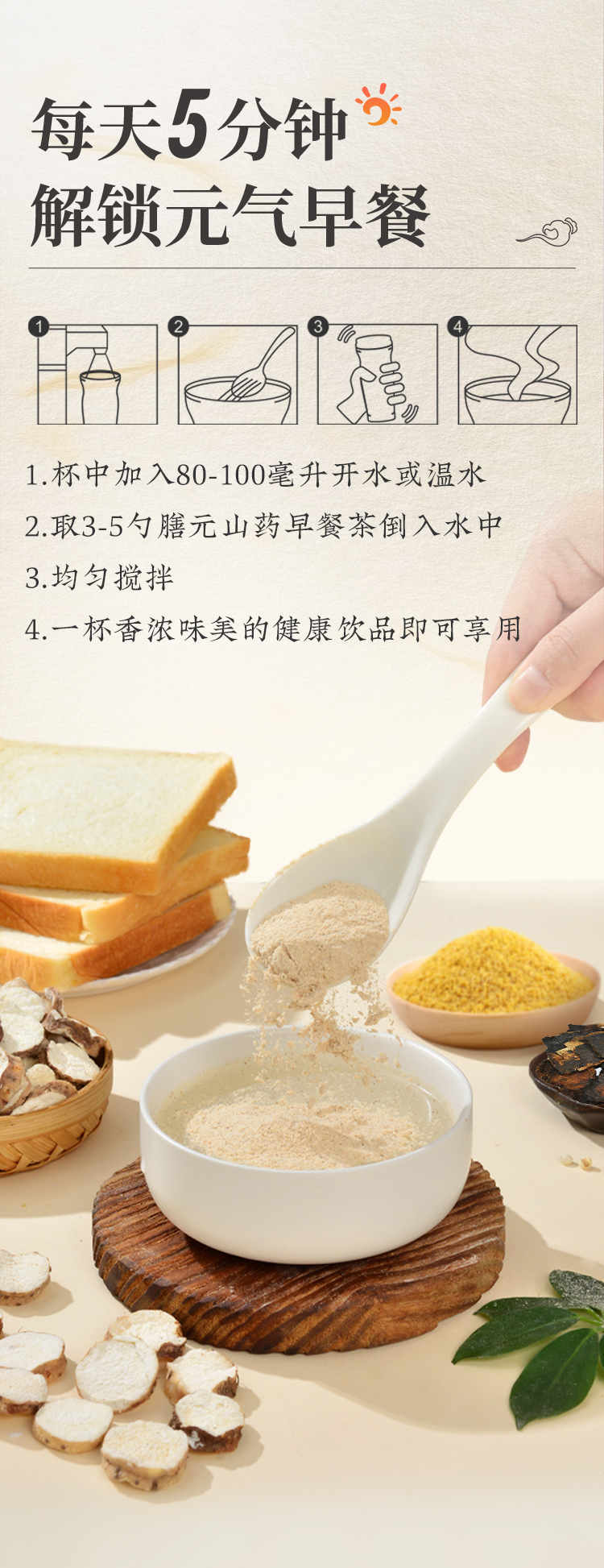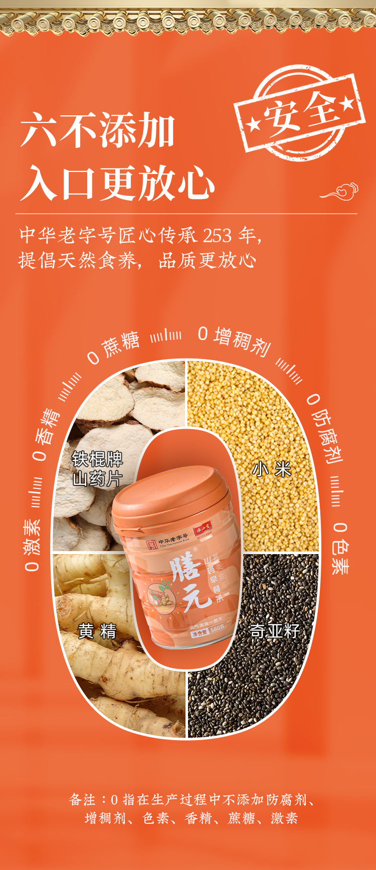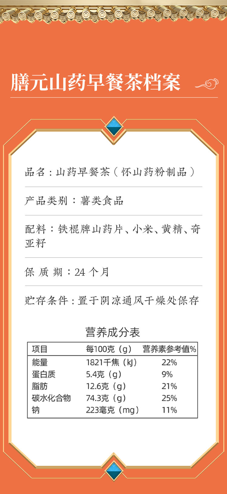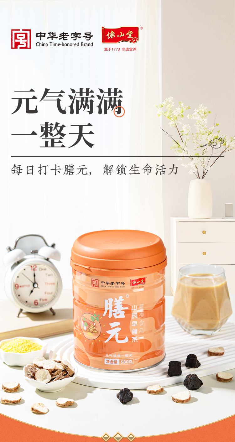 怀山堂 膳元早餐茶580g温县垆土铁棍怀山药熟粉中华老字号非遗山药粉元气满满一整天