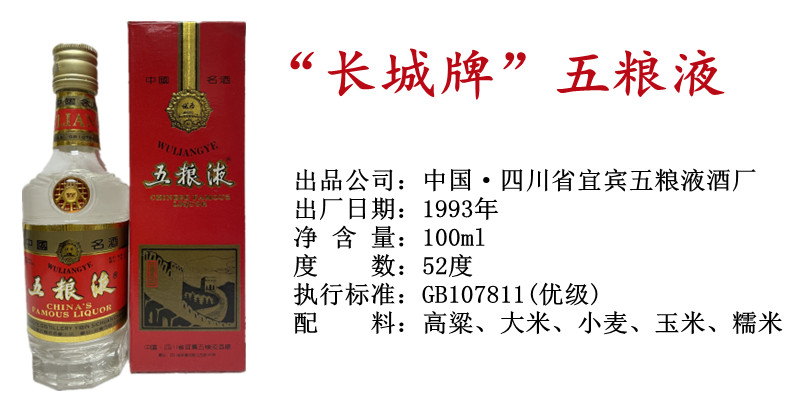 【1993年出厂老酒小酒版一组】“长城牌”五粮液 52度 100ml;“方剑”剑南春 52度 50ml×2(原物拍摄,酒线品相如图,看好下单谢谢!)