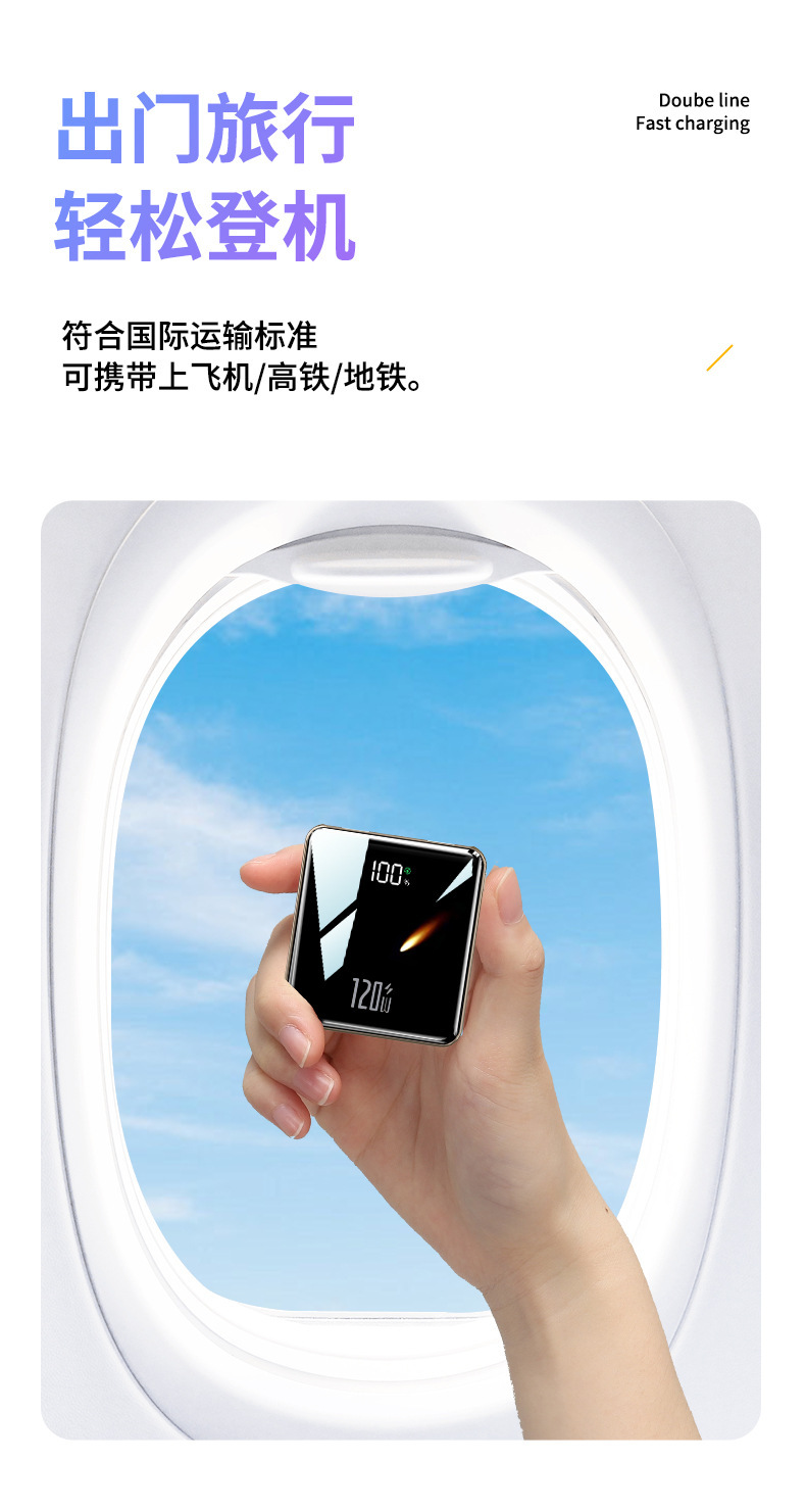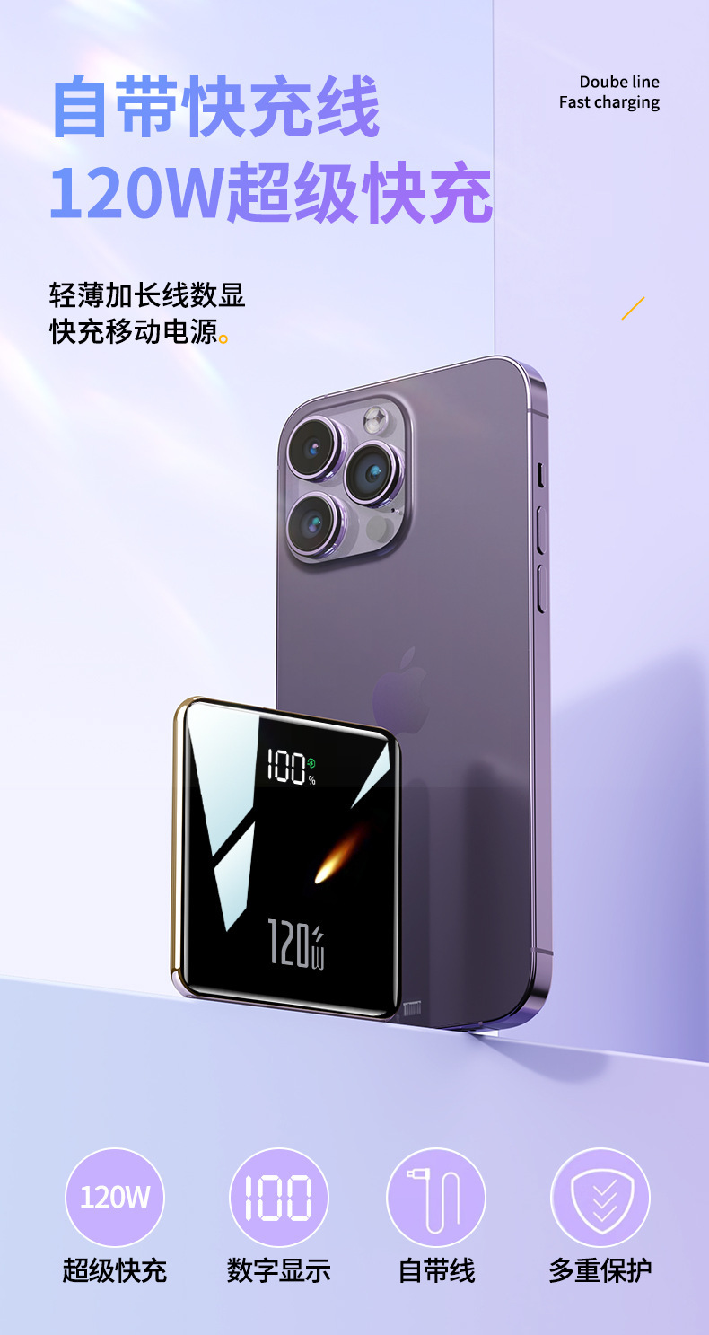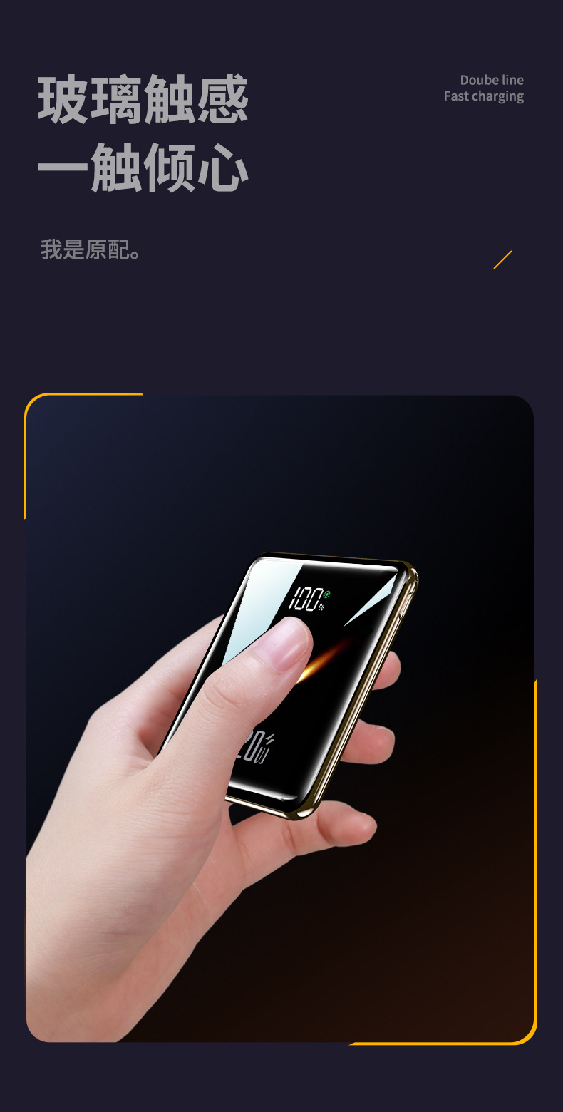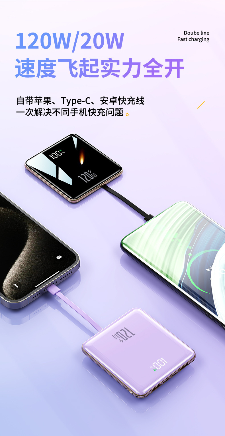 【便携小巧超薄快充充电宝】迷你快充自带线20000毫安大容量移动电源