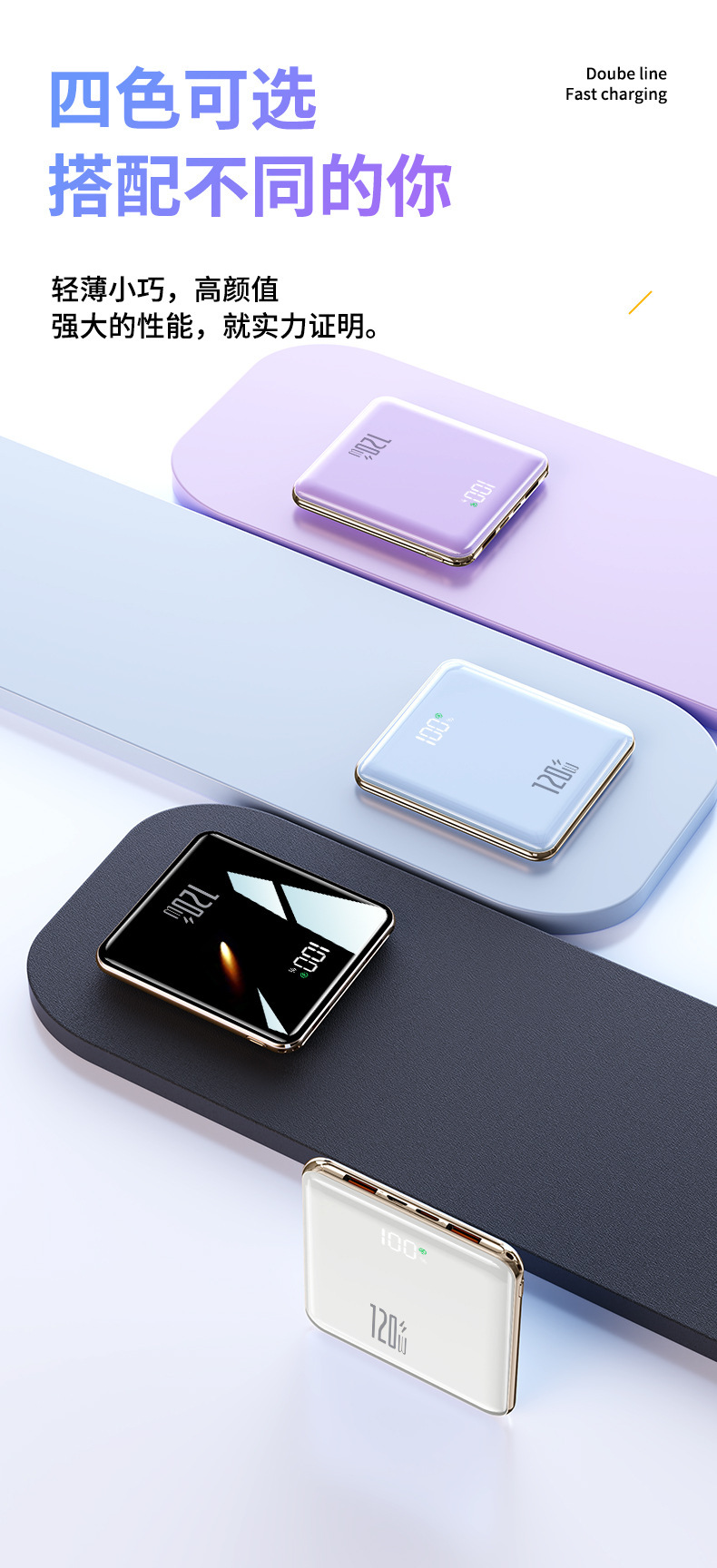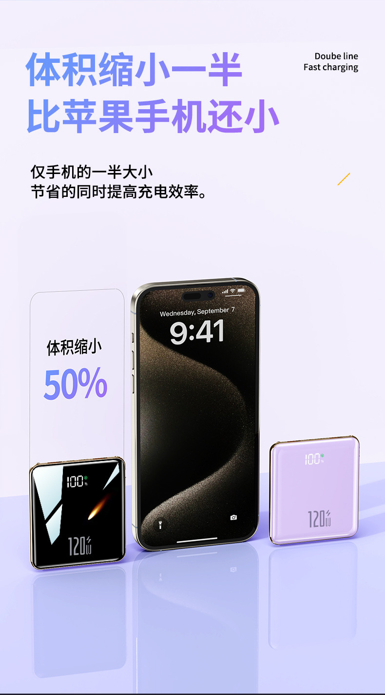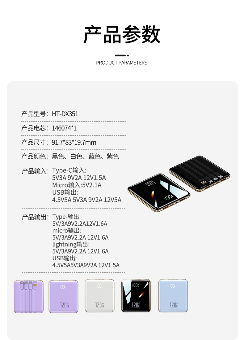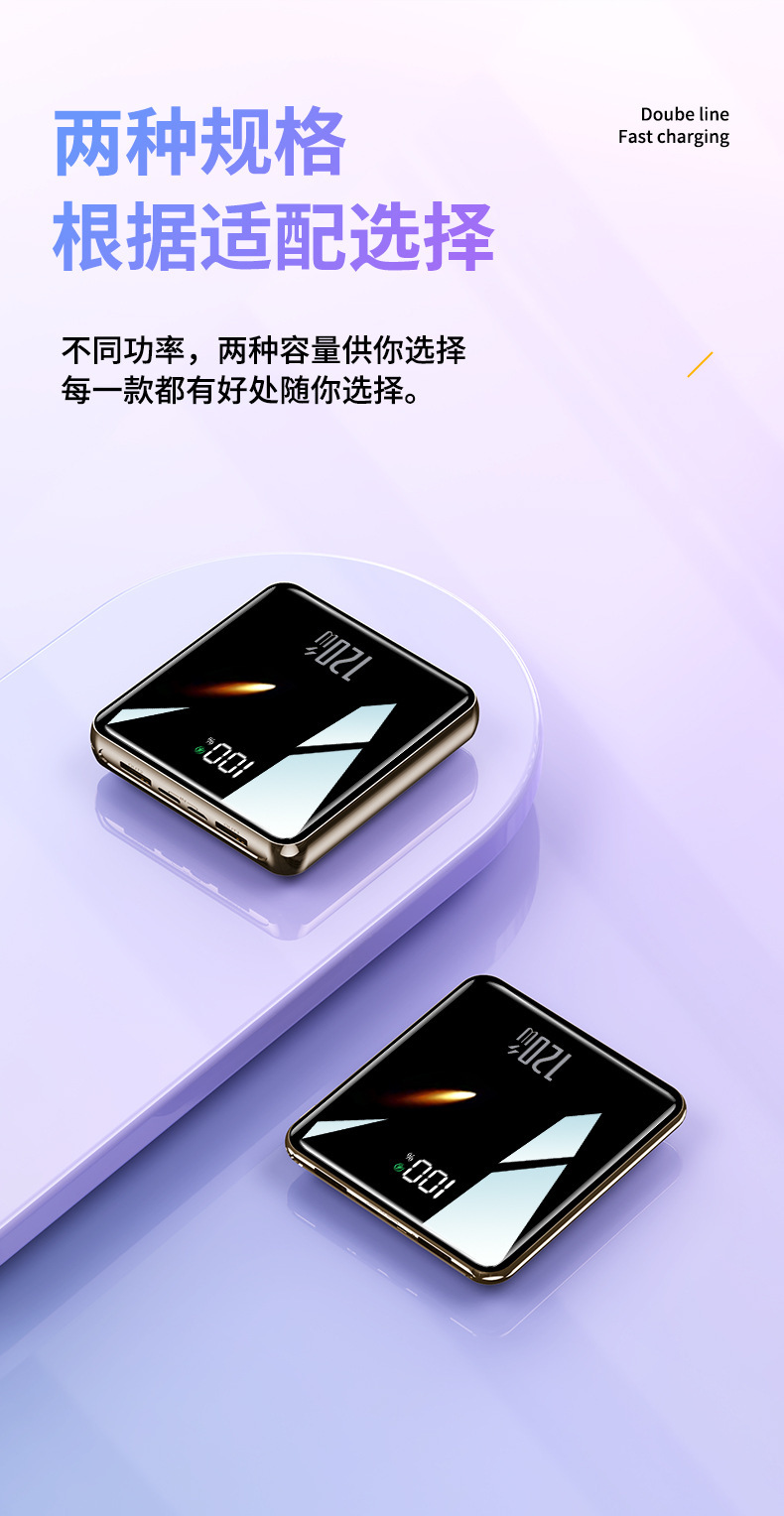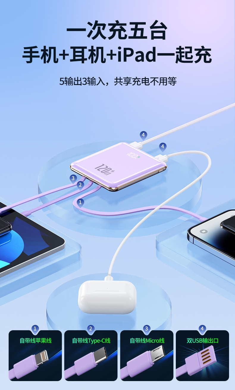 【便携小巧超薄快充充电宝】迷你快充自带线20000毫安大容量移动电源
