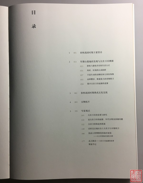 以各种形式全面介绍春秋战国时期北京地区尖首刀币的起源、特征、形制等,既包括一百多张相关的精美文物图片,也包括文物的拓片及相关专家的理论观点。