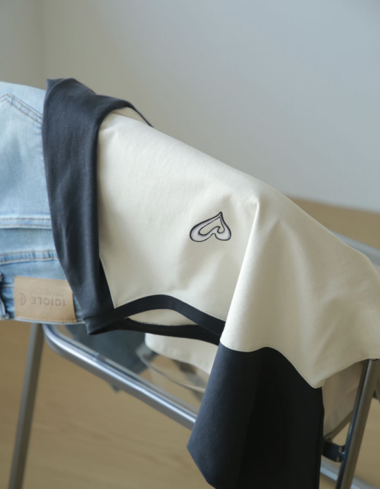 📷本团实拍,实物品质真的绝了❗ 拼色插肩袖设计,上身好高级 双纱全棉面料,手感柔软但又自带一点硬挺度 胸口爱心印花非普通胶印,做的进口水墨工艺 无论怎么大力拉扯,都不会开裂,放心穿! 衣身的廓形设计偏宽松,上身没有束缚感 遮肉效果刚刚好,简单舒适……