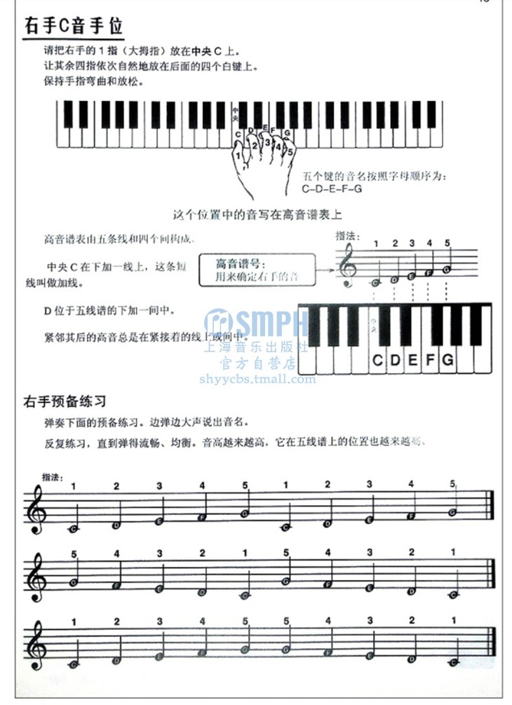 中央C手位、《大拇指放在C音上》
