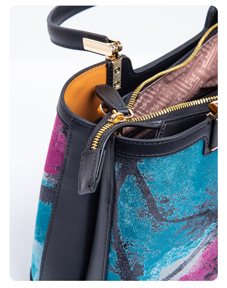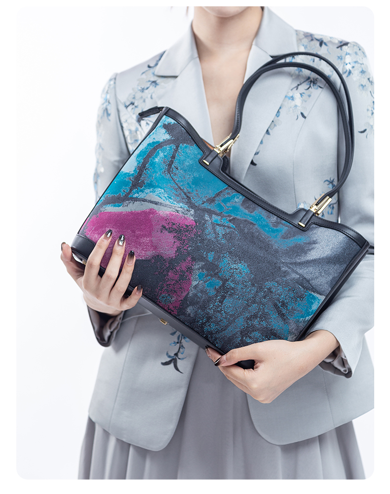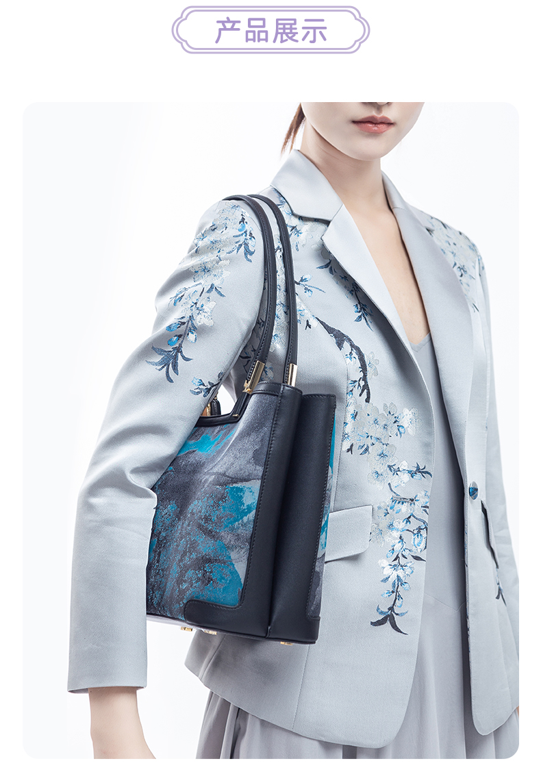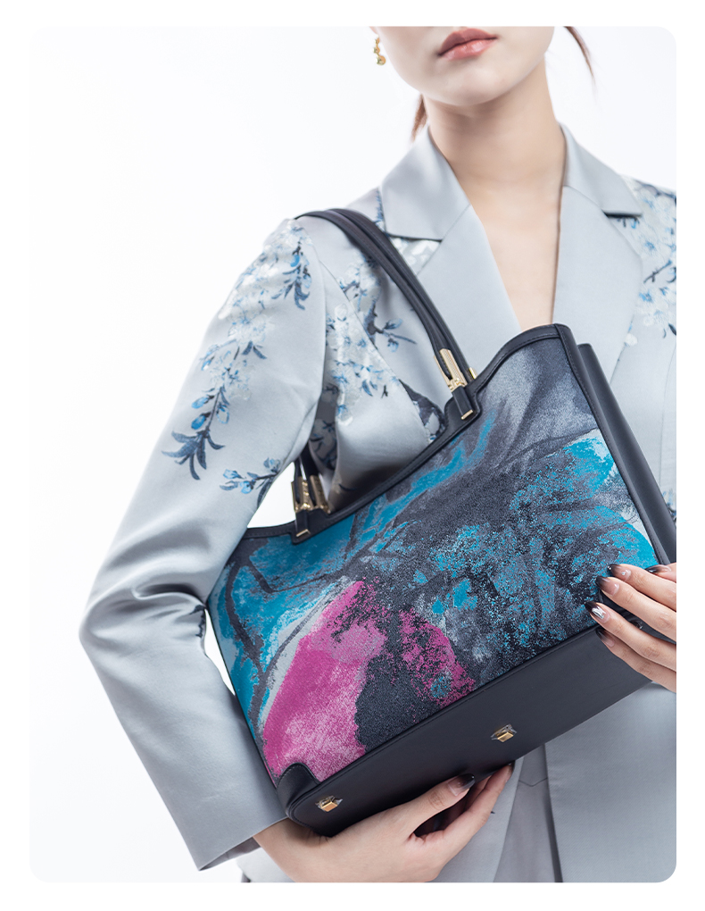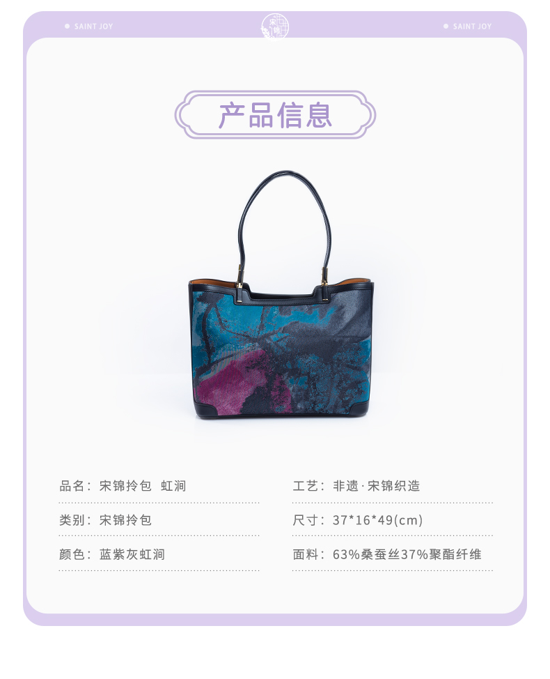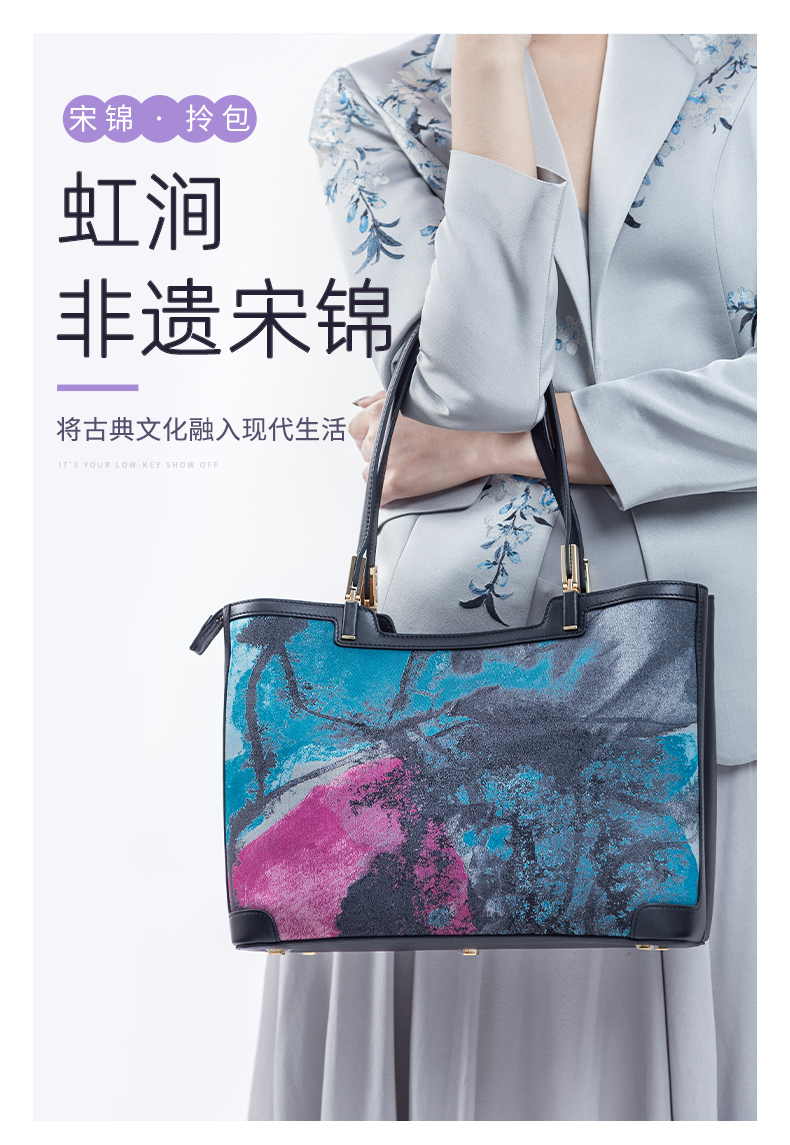 SAINTJOY/上久楷 宋锦女式拎包 蓝紫灰虹涧 BWW18A2001