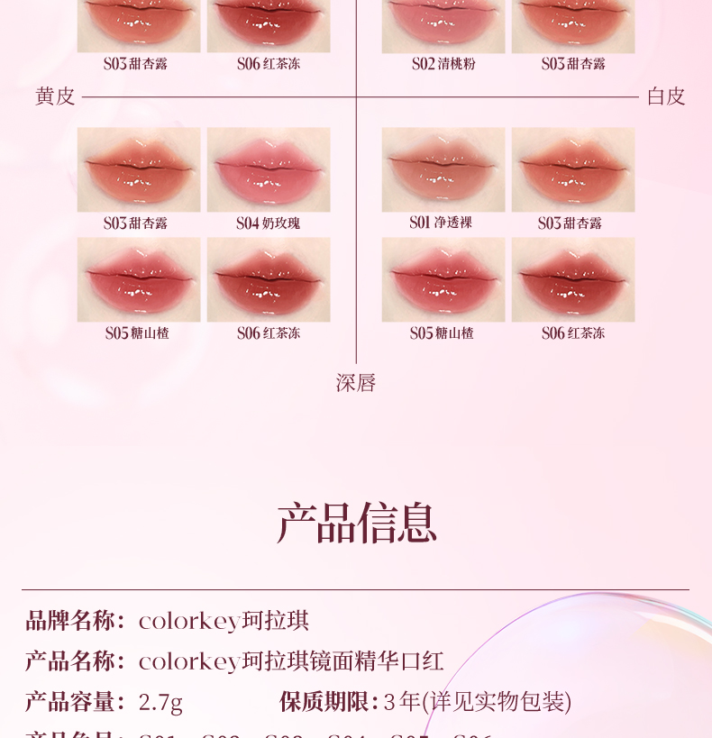 【日常专享 78元/2件】Colorkey珂拉琪精华口红显白滋润保湿秋冬唇釉淡化唇纹镜面伪素颜