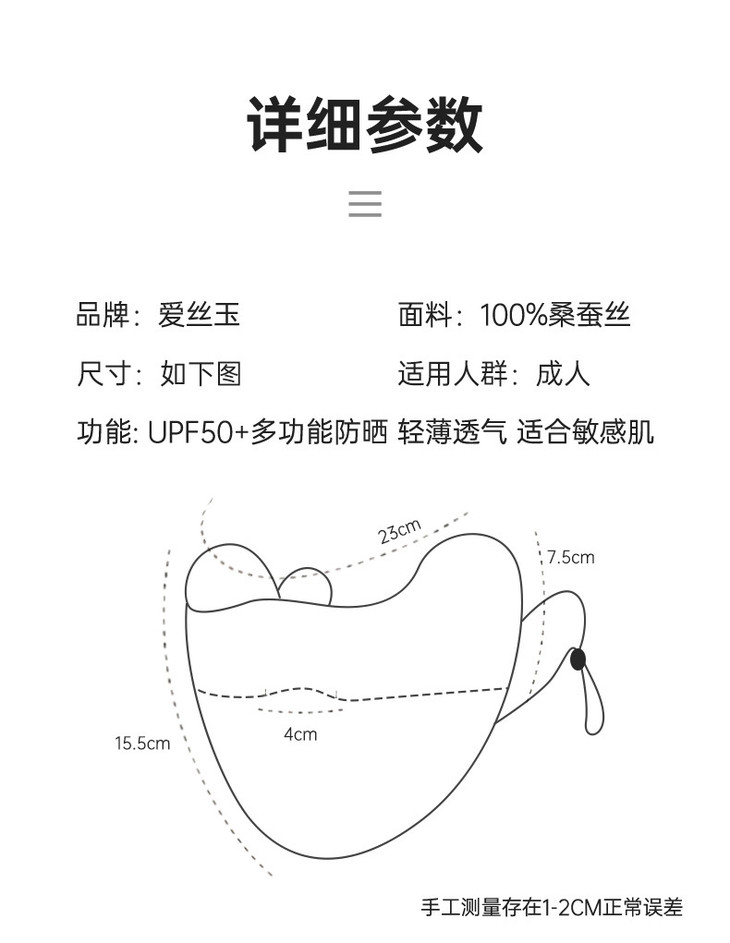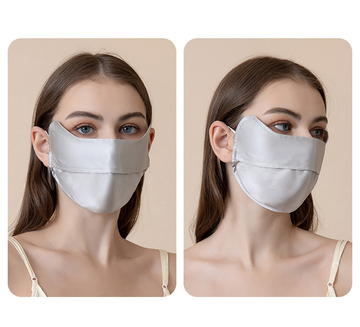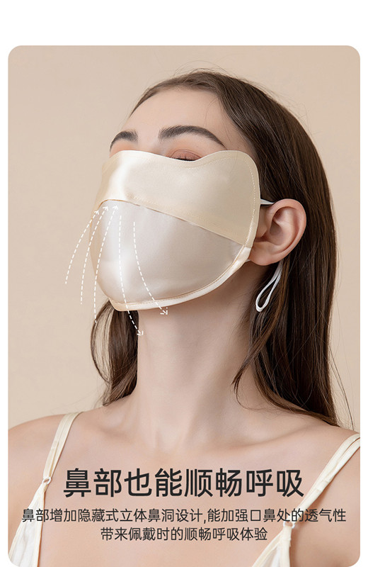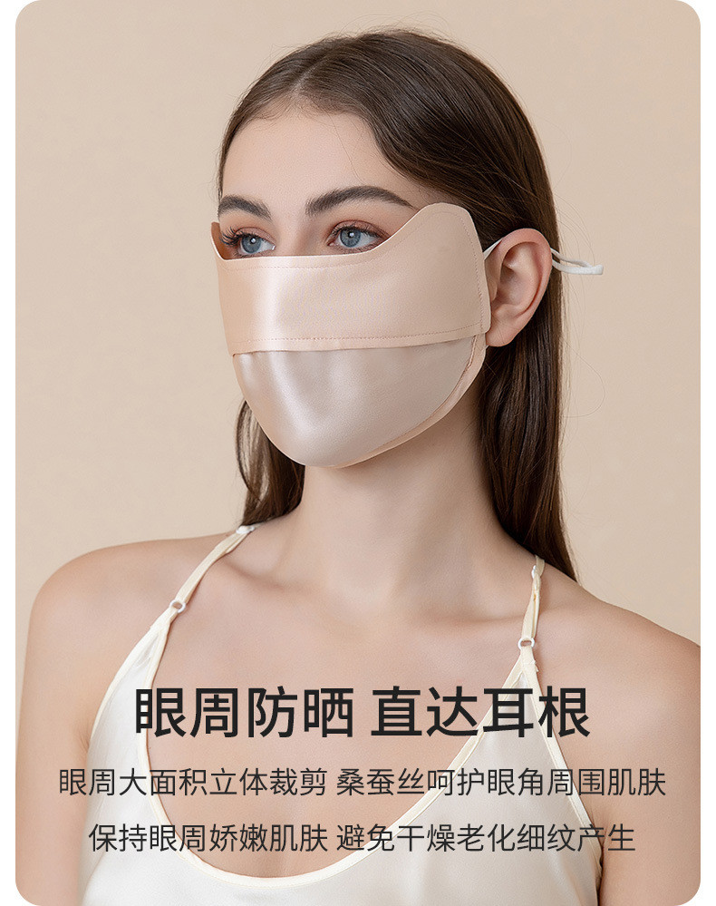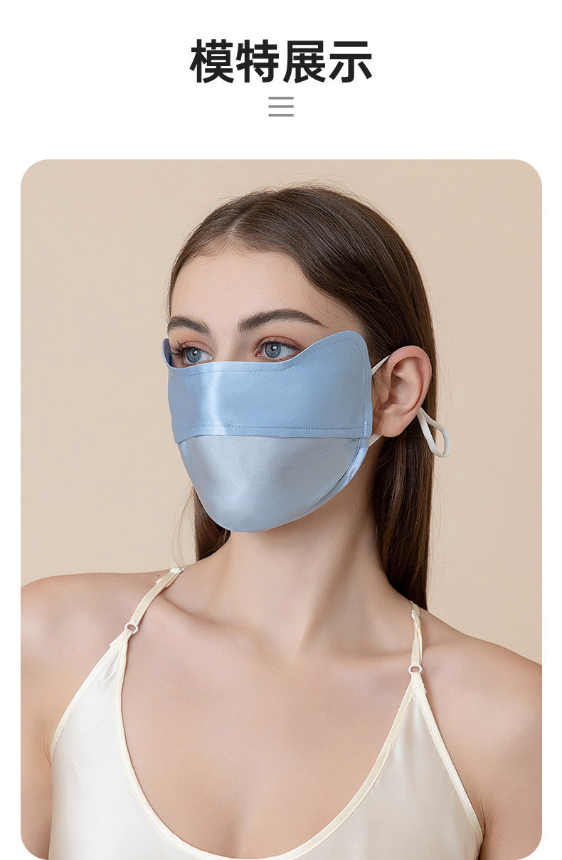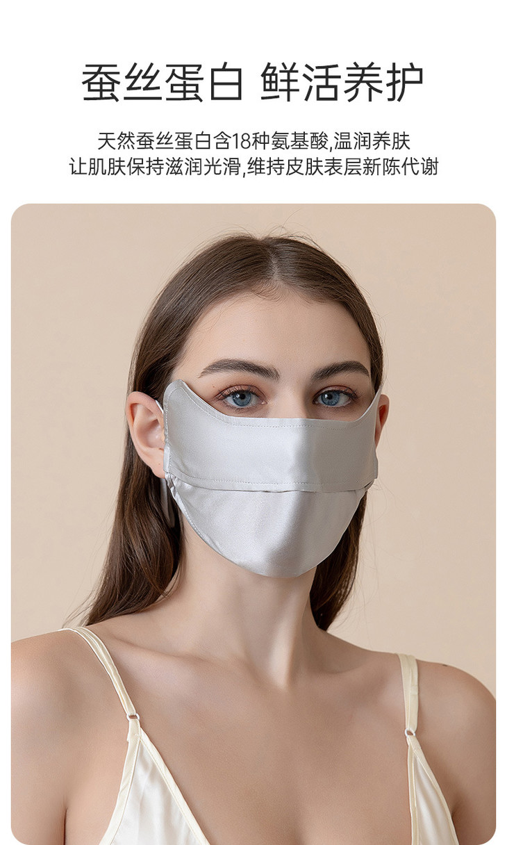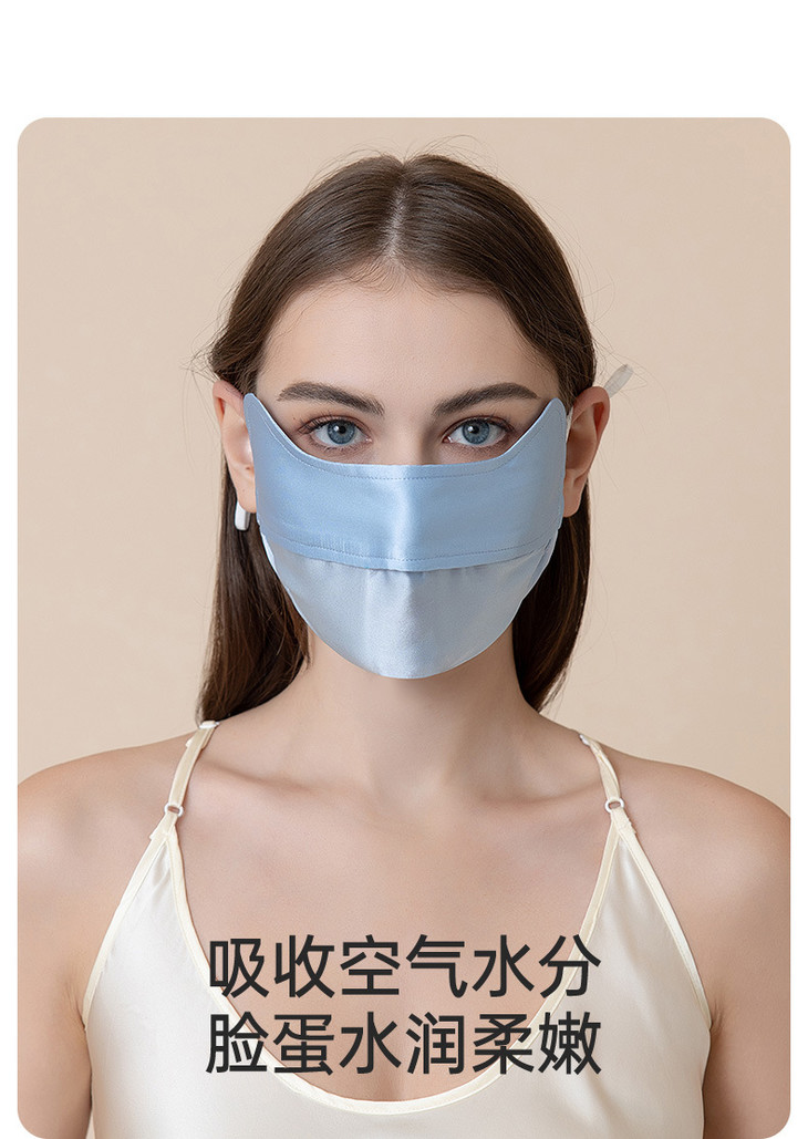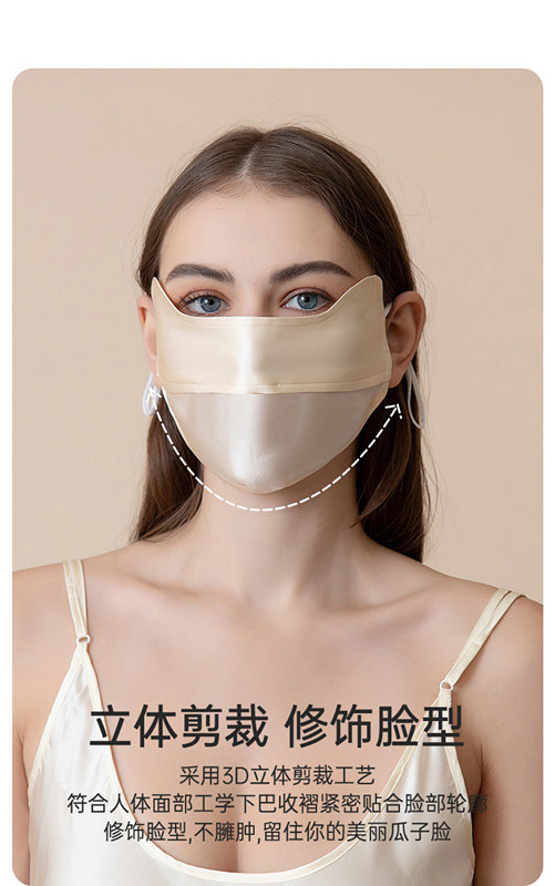 【专业级防护UPF50+! 桑蚕丝防晒口罩】夏季真丝冰丝口罩,阻隔紫外线,加大护眼角,吸湿透气,蚕丝蛋白鲜活养护,女士遮阳防紫外线,修饰脸型,护眼角,桑蚕丝防晒面罩,透气面纱。ry