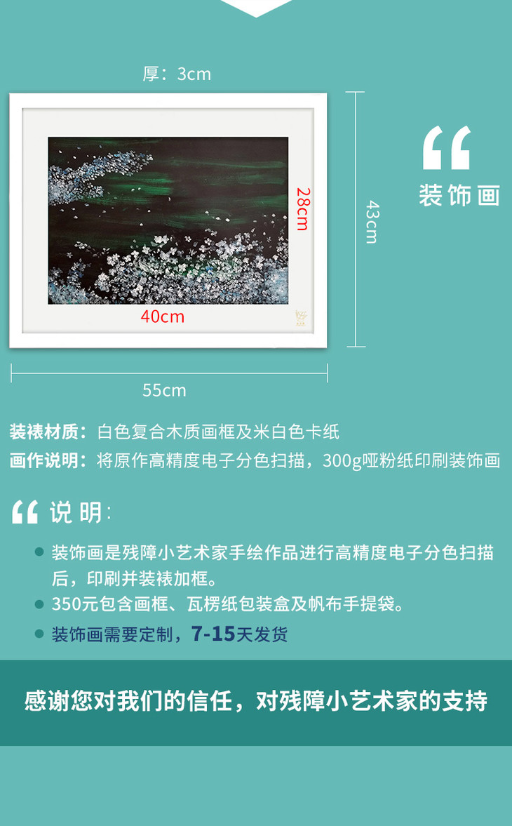 装饰画《碧波浪浪》 金羽翼残障小艺术家手绘作品 复制画/原画
