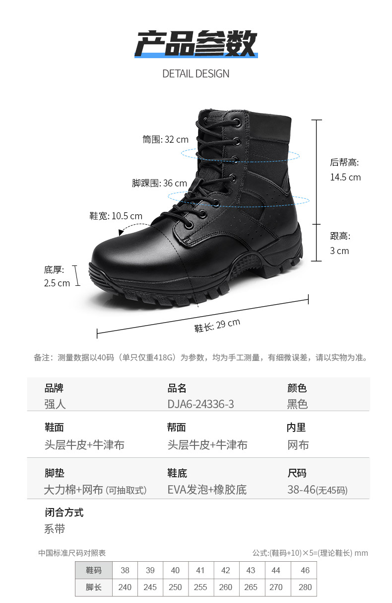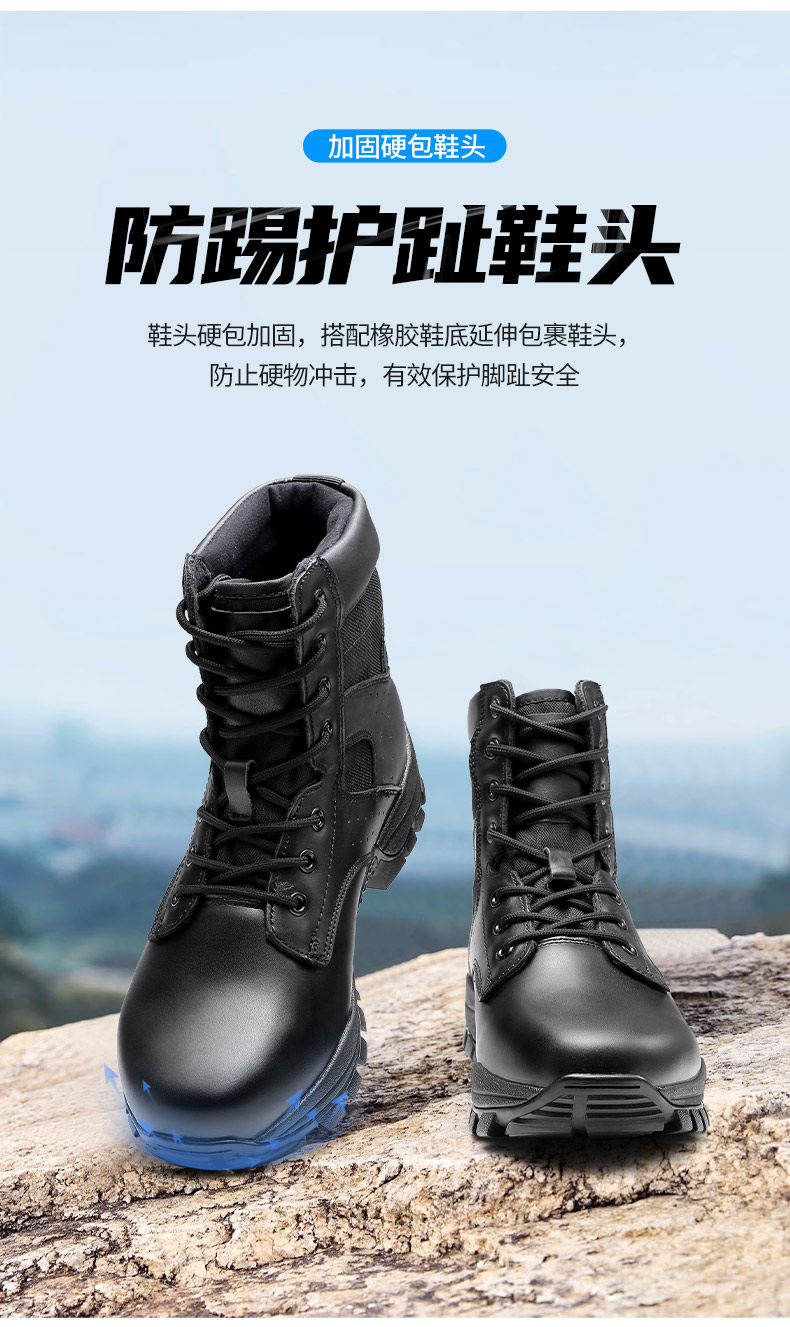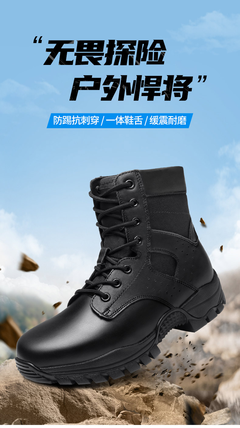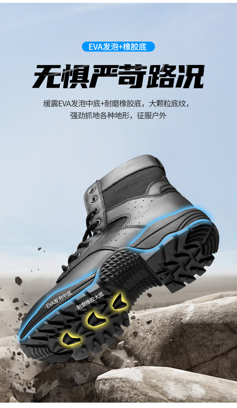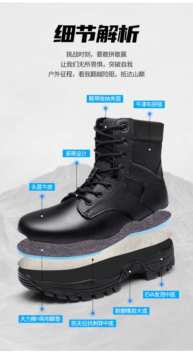 强人3515男靴户外靴黑色高帮徒步鞋越野登山靴耐磨防刺穿战术靴子
