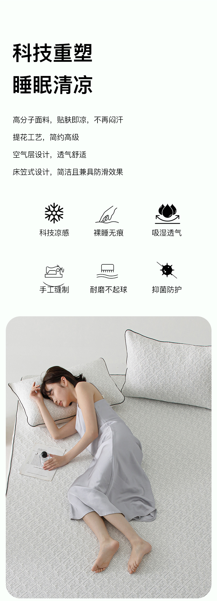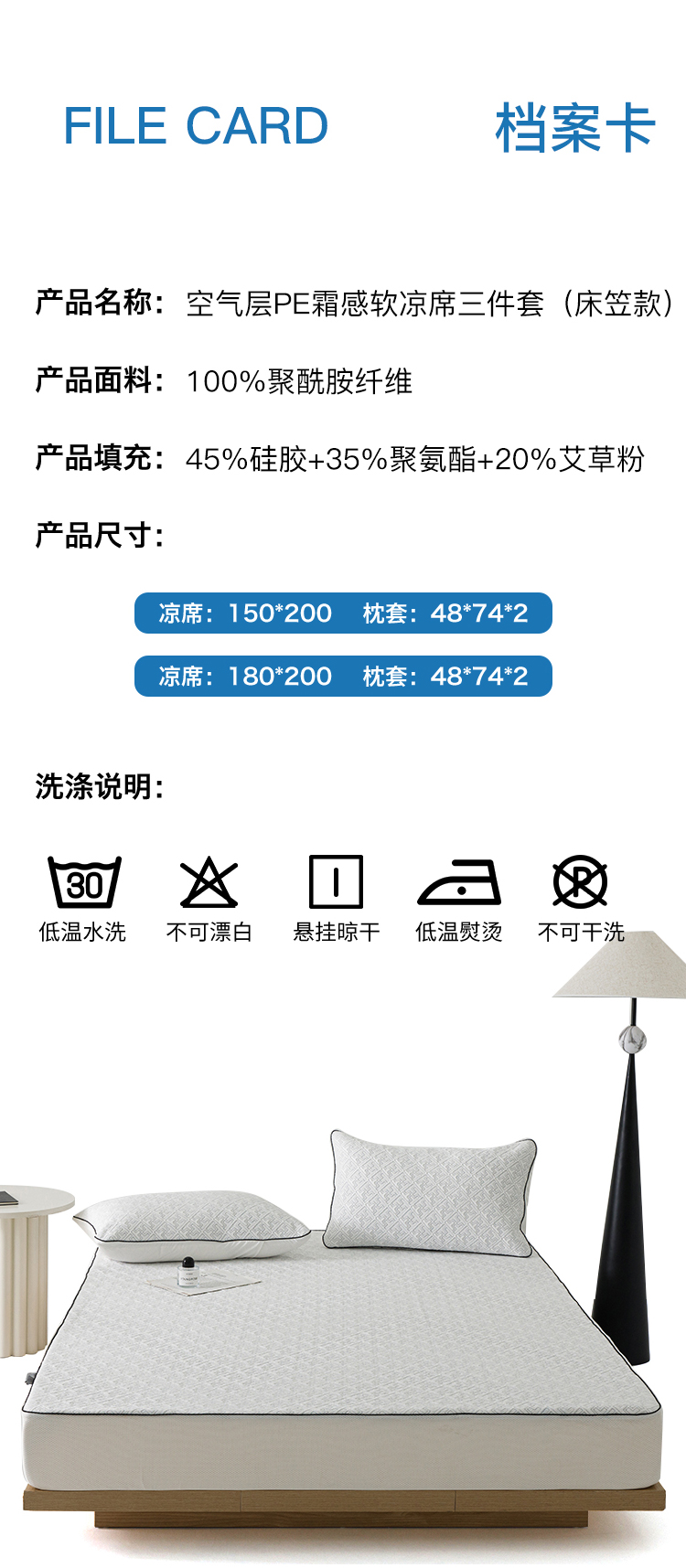 顶柔6D空气层PE霜感软凉席三件套(床笠款)-LX7079