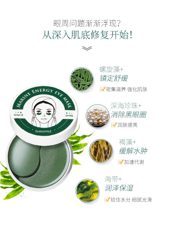 香蒲丽SHANGPREE 海洋水光绿眼膜贴60片(绿眼膜熬夜淡化黑眼圈淡化细纹眼袋男女补水眼膜)