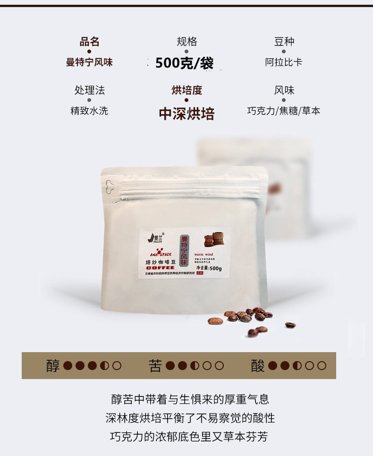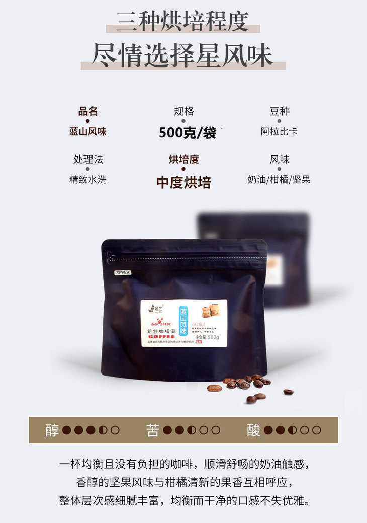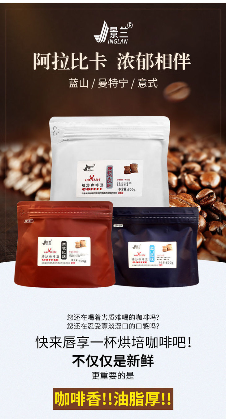【食品酒水】日内新鲜烘焙云南小粒咖啡豆克可现磨蓝山黑咖啡粉纯咖啡烘焙