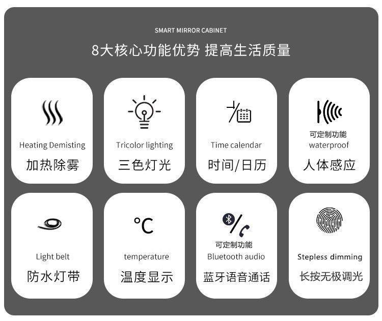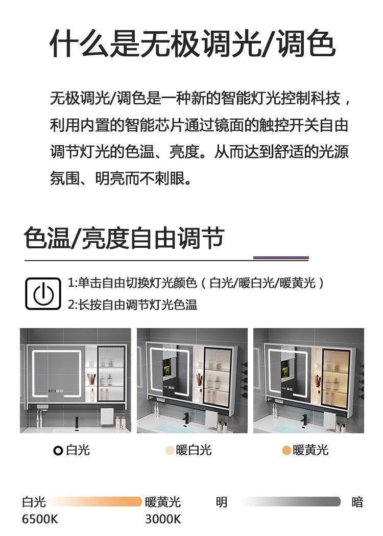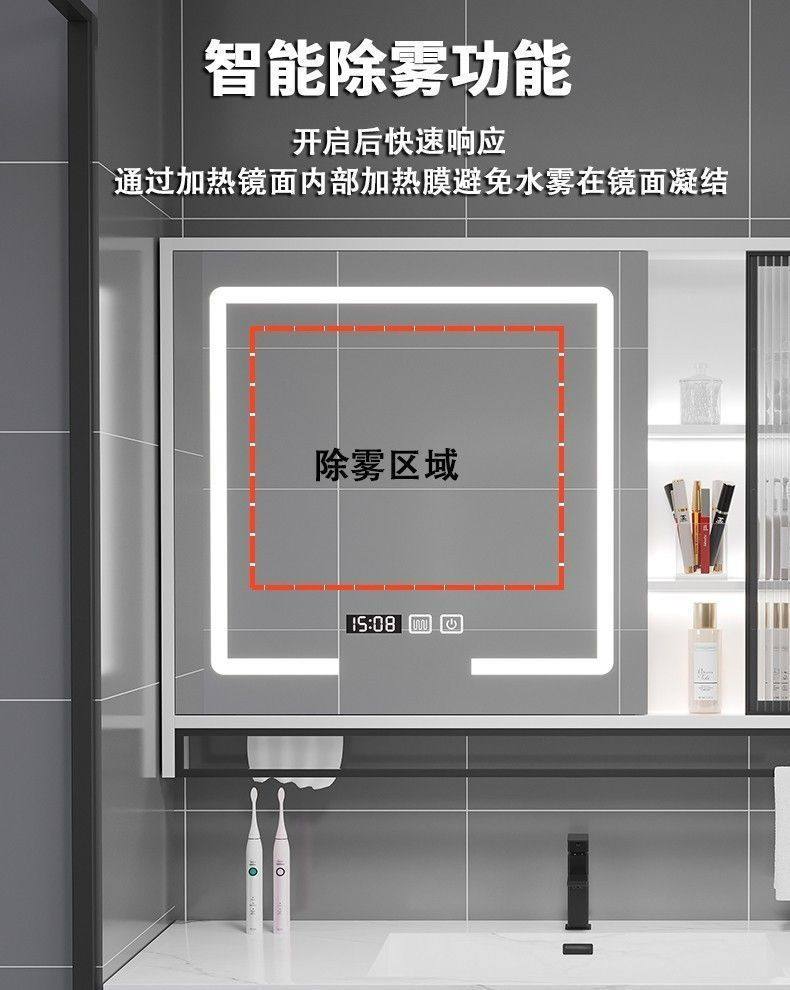 长虹玻璃门浴室镜卫生间实木智能柜单独雾层板挂灯除墙式镜箱镜子