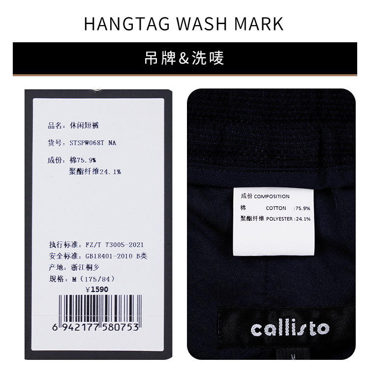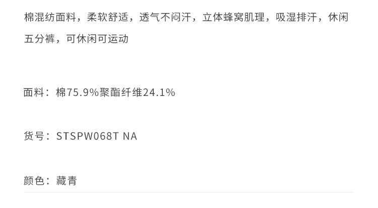 callisto藏青棉混纺休闲短裤 STSPW068T