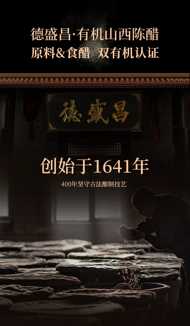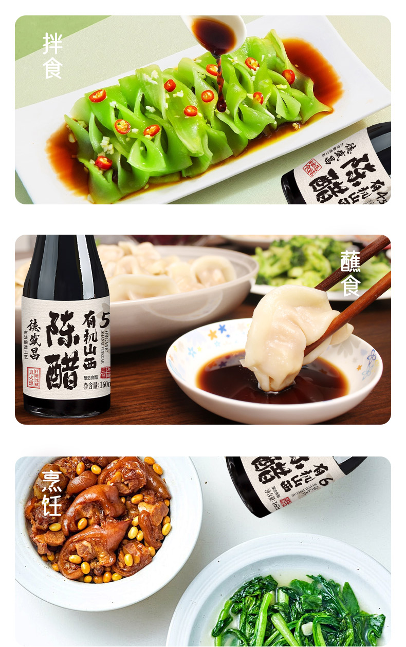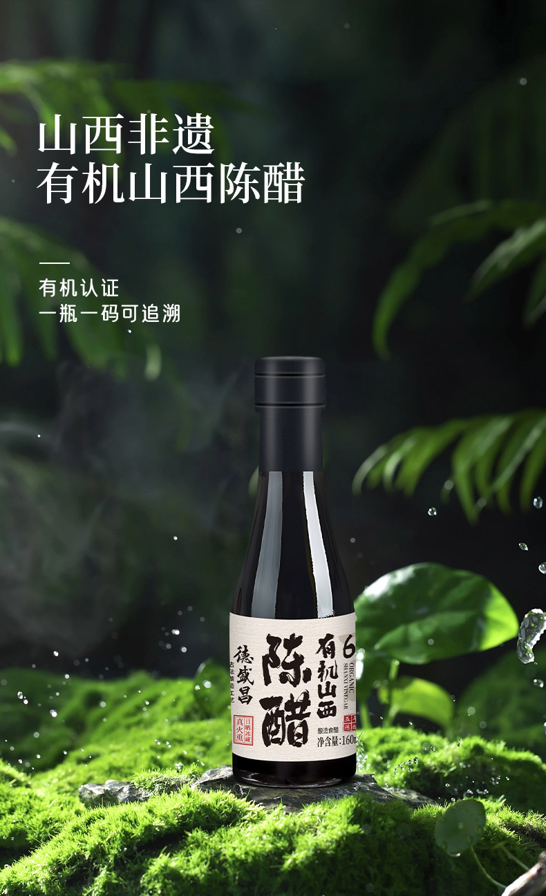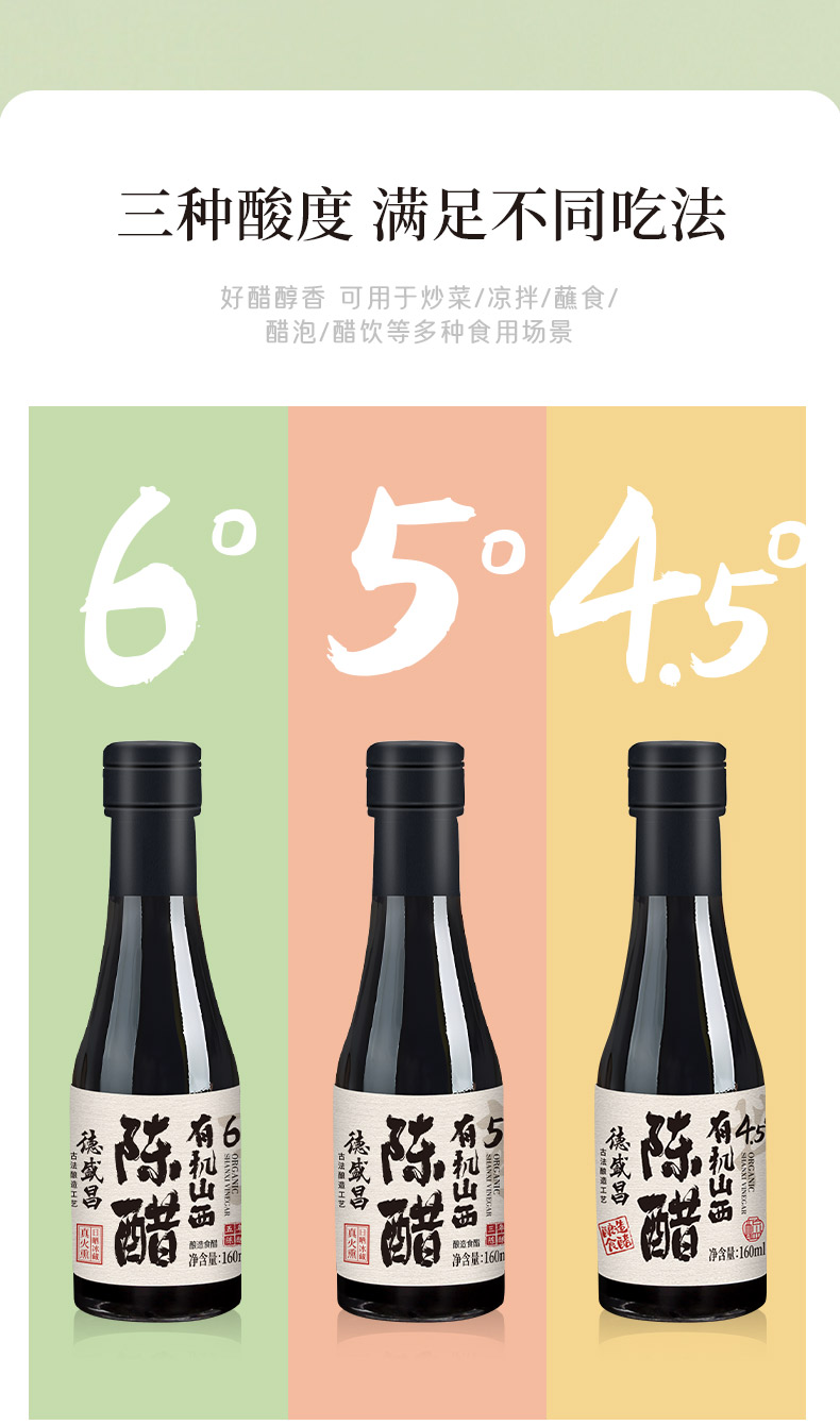 【凤品优选】德盛昌有机山西陈醋纯粮酿造食用凉拌饺子醋4.5度5度6度160ml组合装双有机认证山西特产