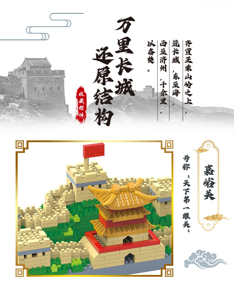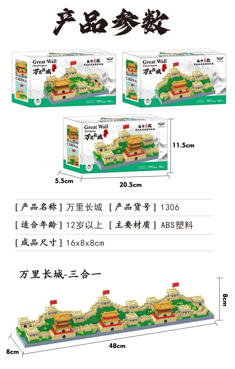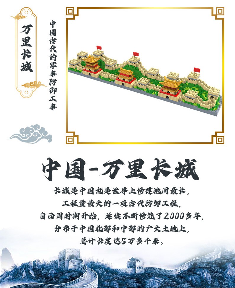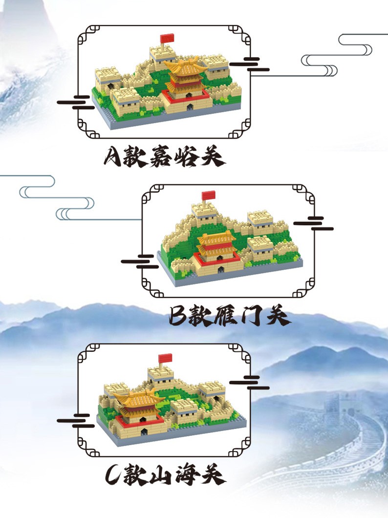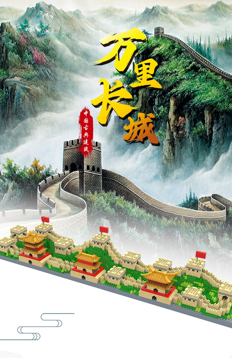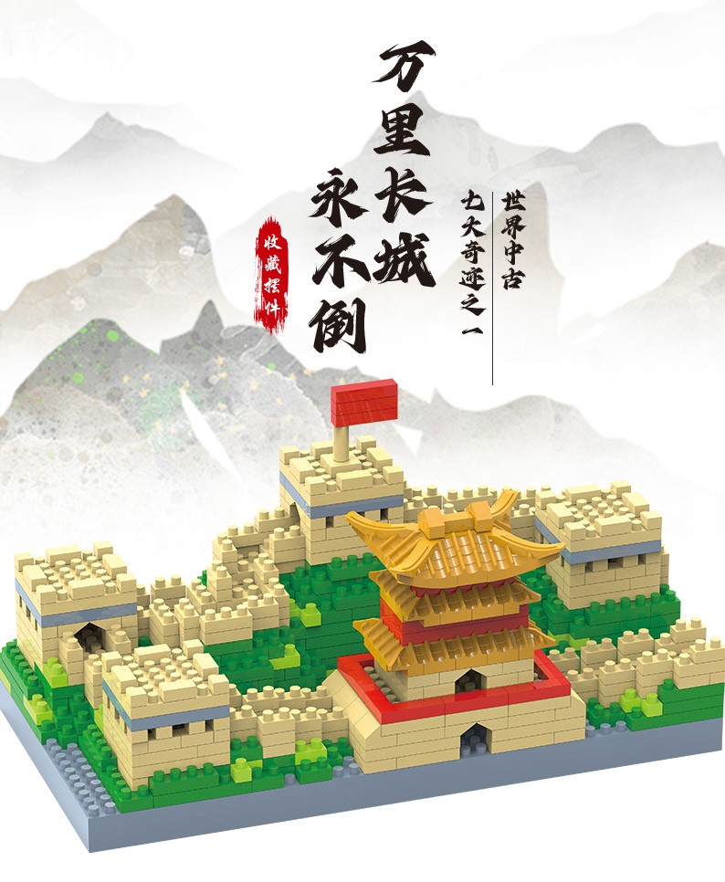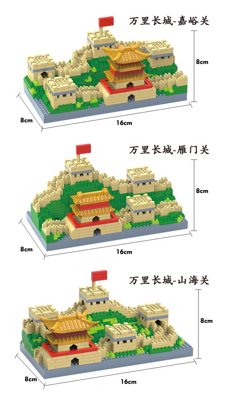 福利9.9!【国防教育从幼儿开始】小号天安门万里长城三合一微颗粒积木男女孩益智玩具500pcs