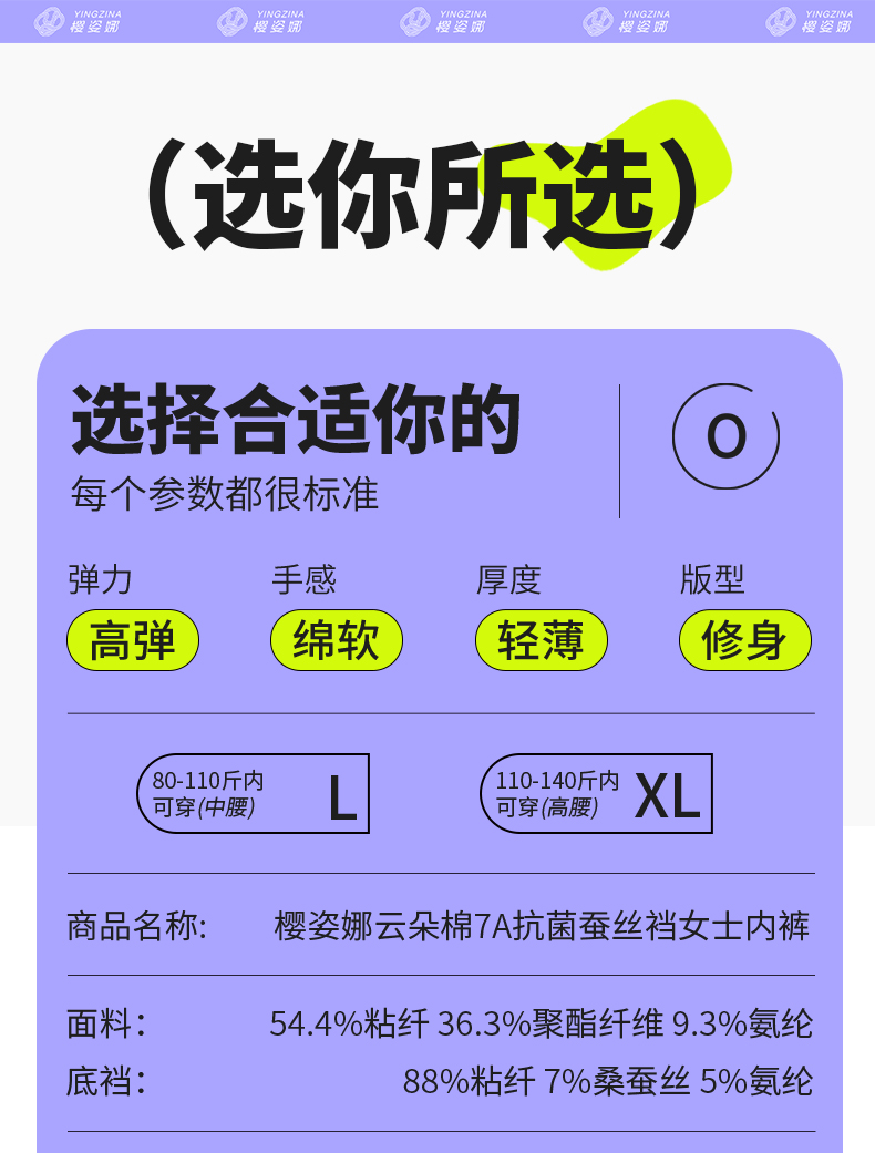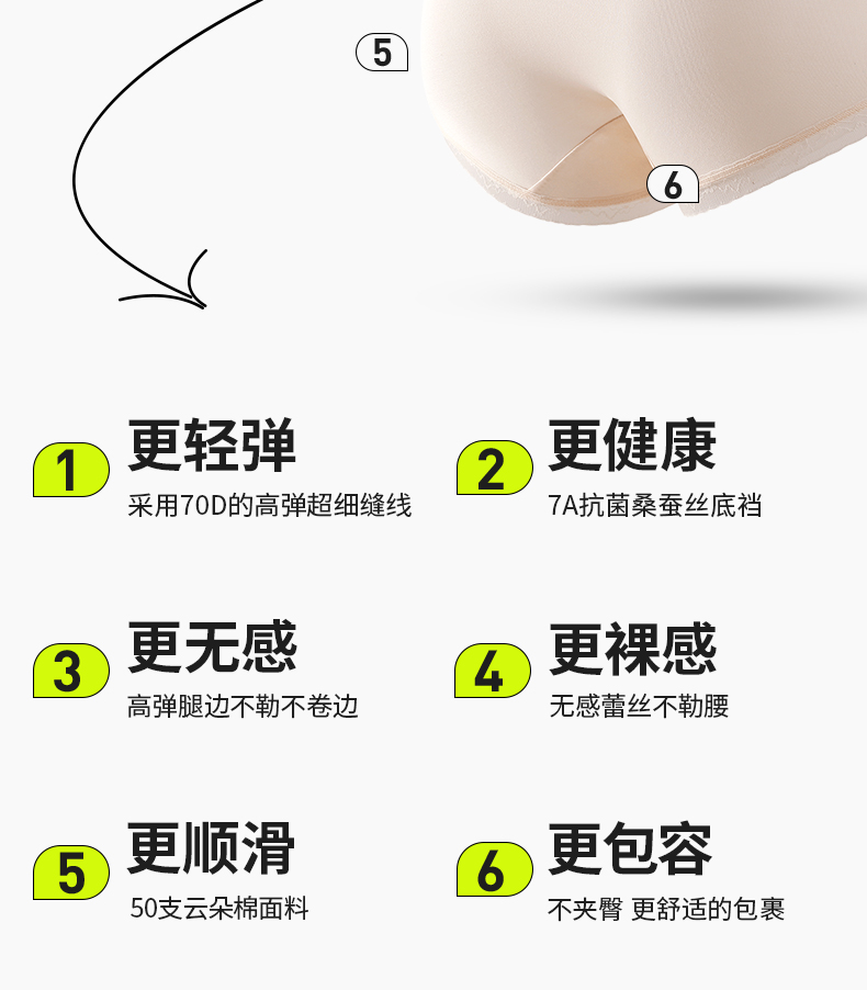 【39.9元/6条】樱姿娜小卫士柔小裤WL87015,轻盈云朵棉,6条礼盒装