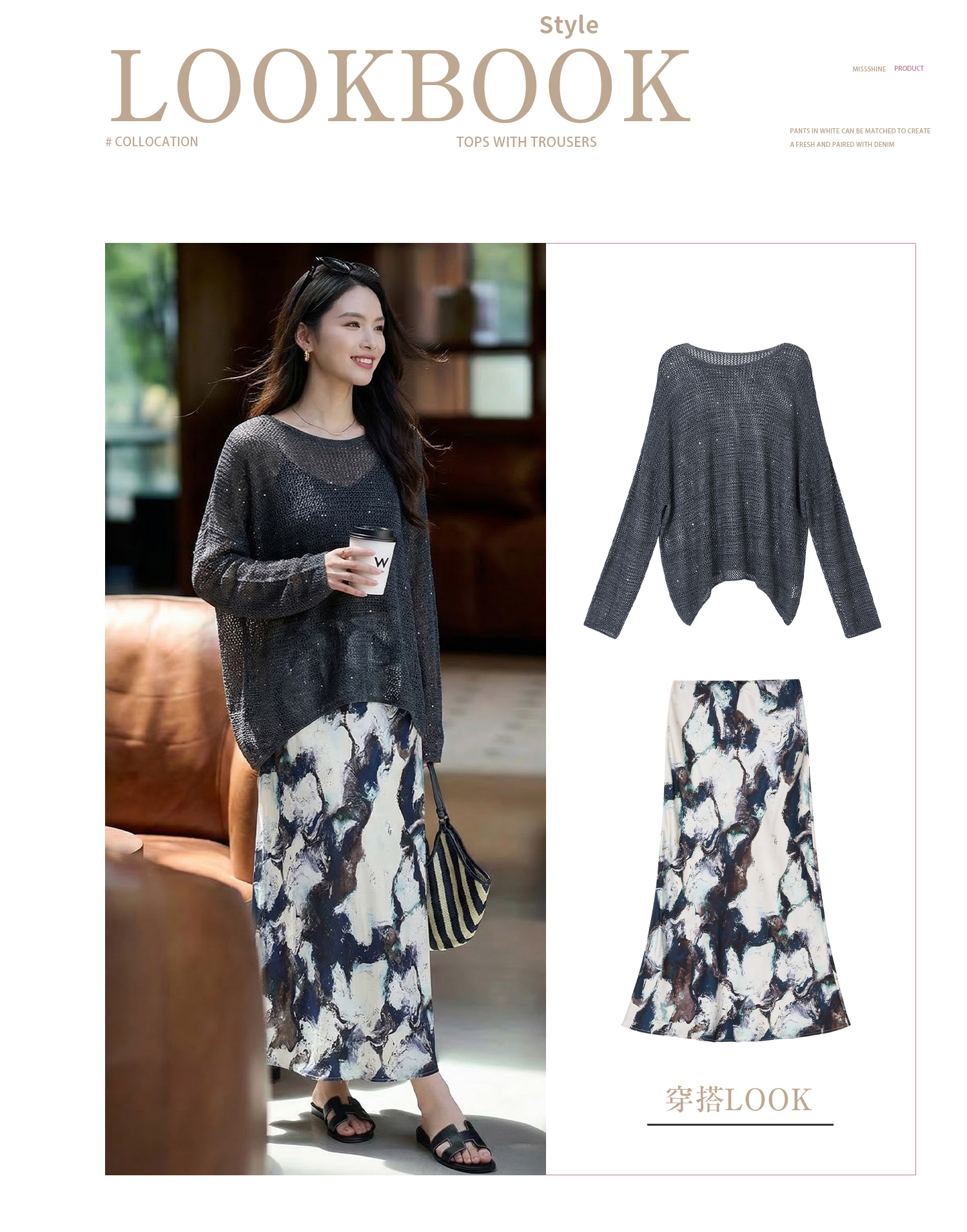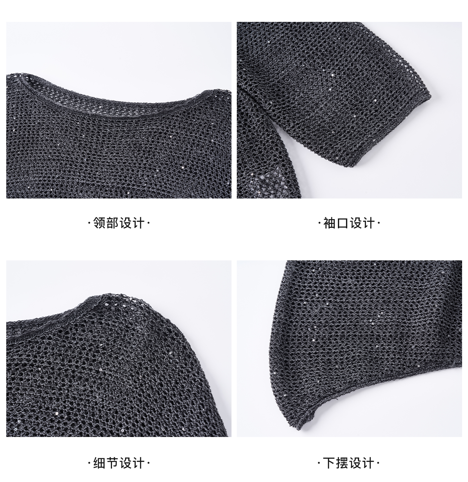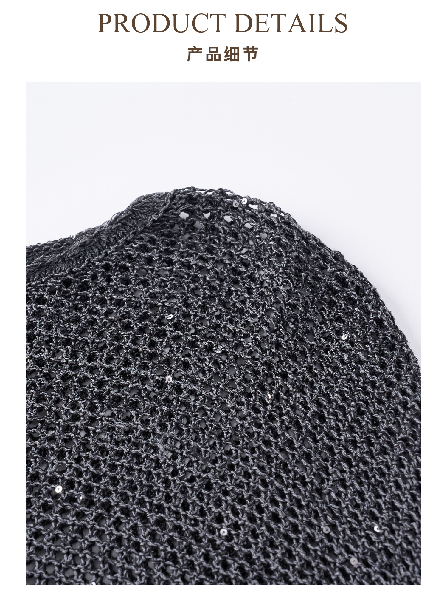慵懒镂空针织罩衫 米思阳2026夏季新款圆领透视宽松薄款长袖防晒度假针织衫女1172